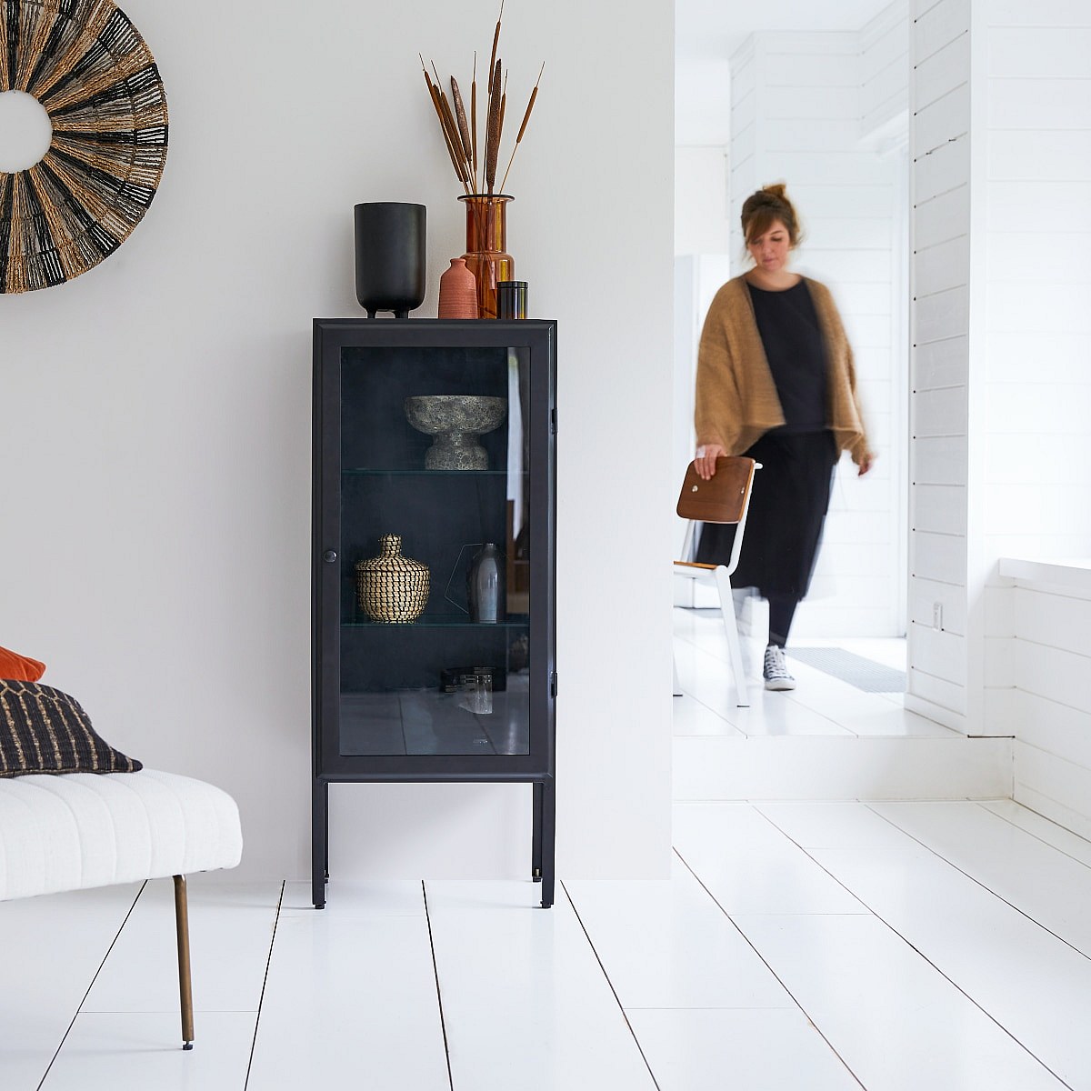 Vitrine haute en métal peint Emil