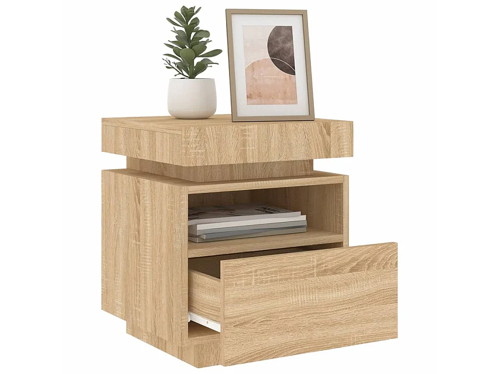 Table de chevet avec lumières LED chêne sonoma 40x39x37 cm