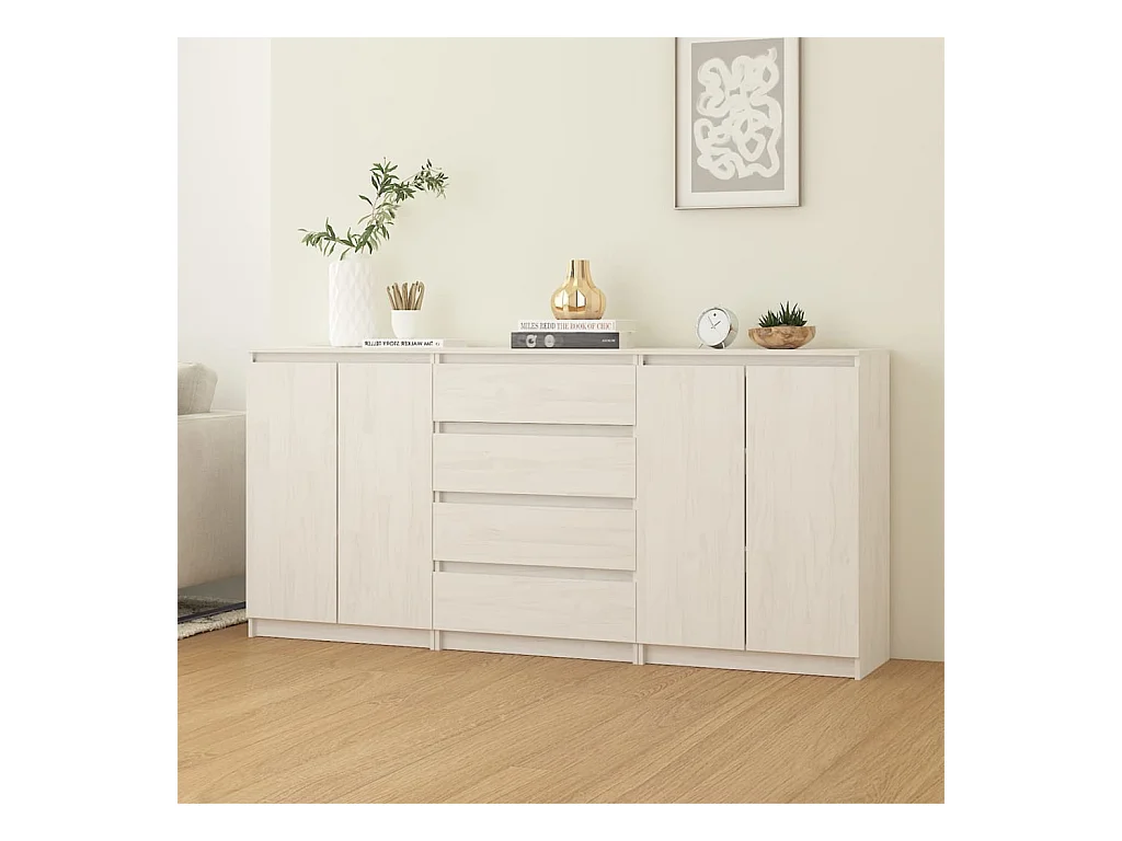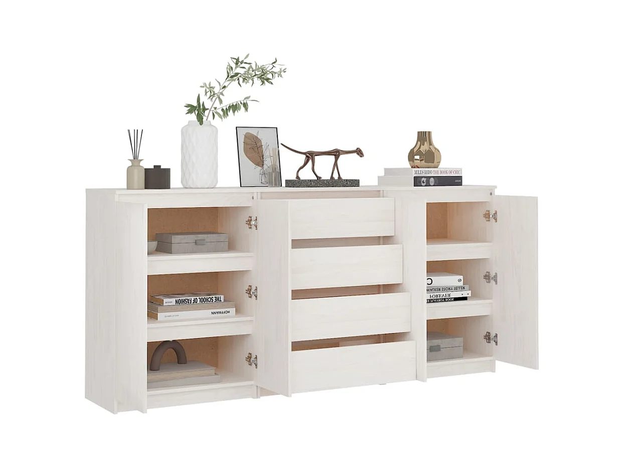 Armoires latérales 3 pcs blanc Bois de pin massif