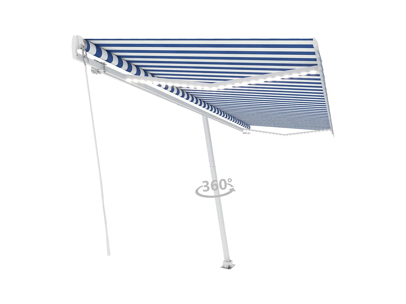 Auvent manuel rétractable sur pied 500x350 cm Bleu/Blanc