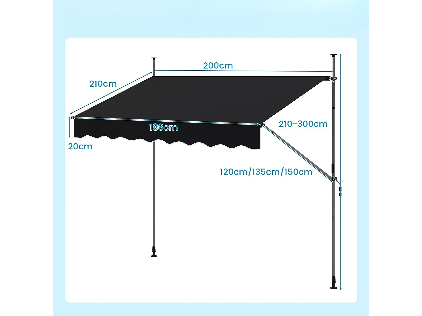 Auvent Rétractable Manuel 200 x 300 cm Réglable en Hauteur Pare-Soleil Extérieur avec Manivelle Canopée de Fenêtre Porte Sans Perçage Noir