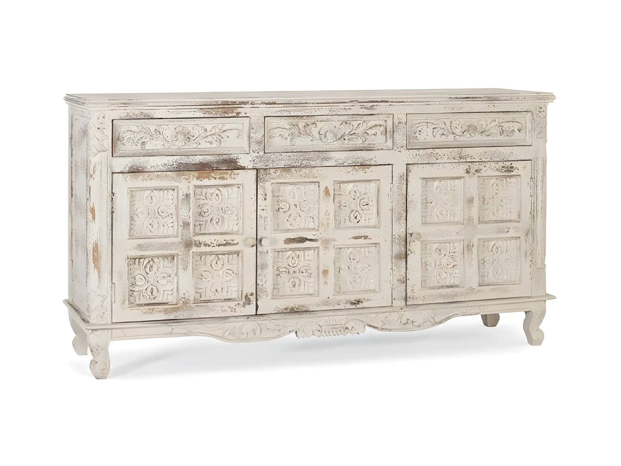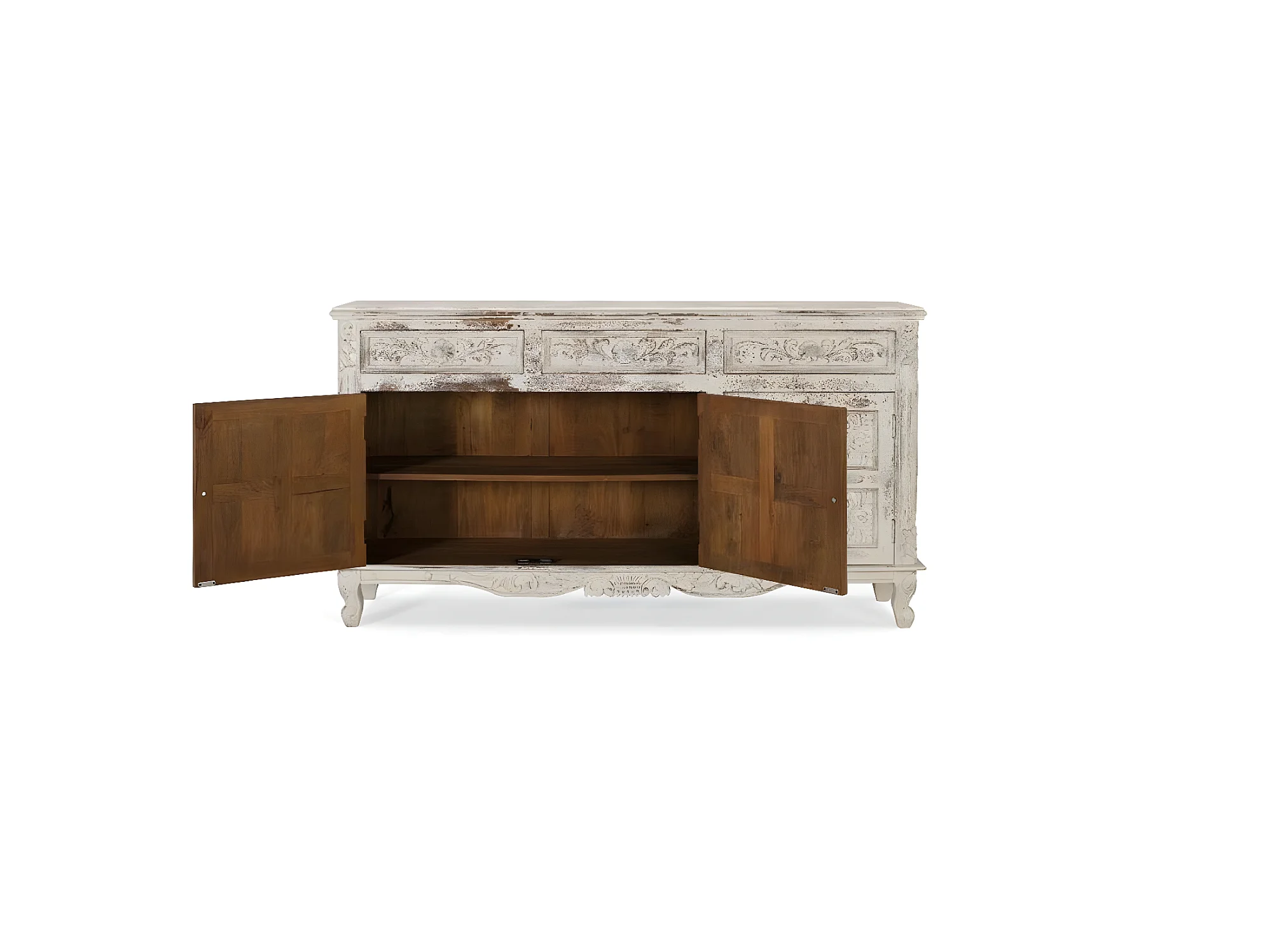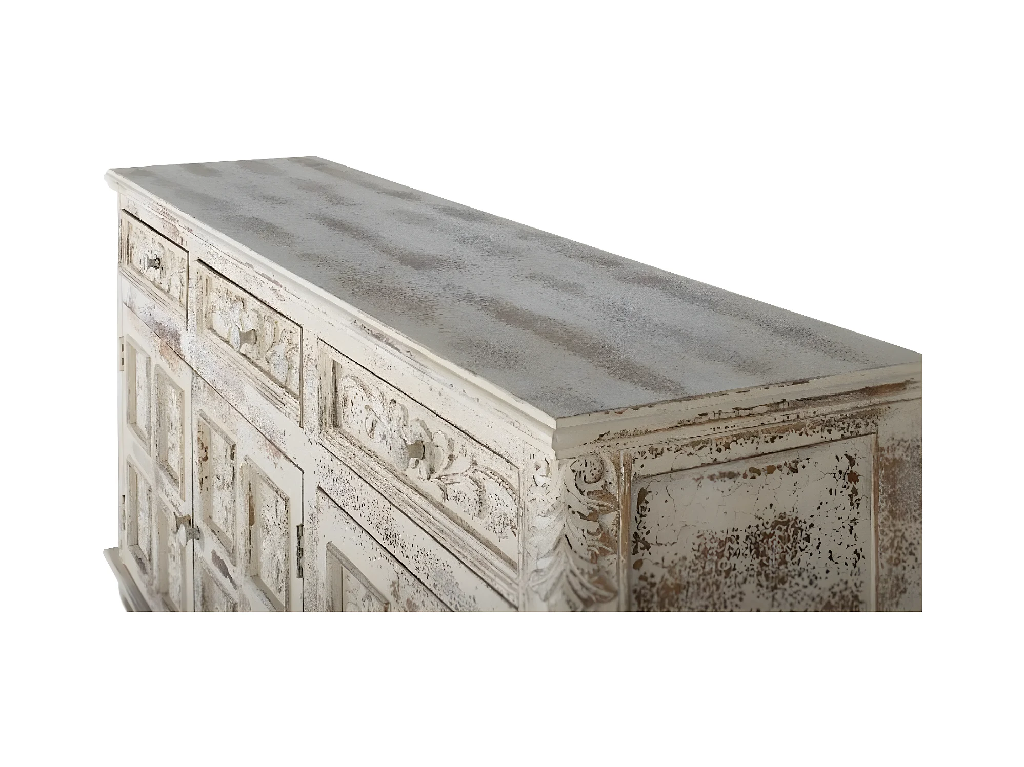 Buffet 3 tiroirs Bois-Fer Blanc - Yzaline Décoration d'Autrefois
