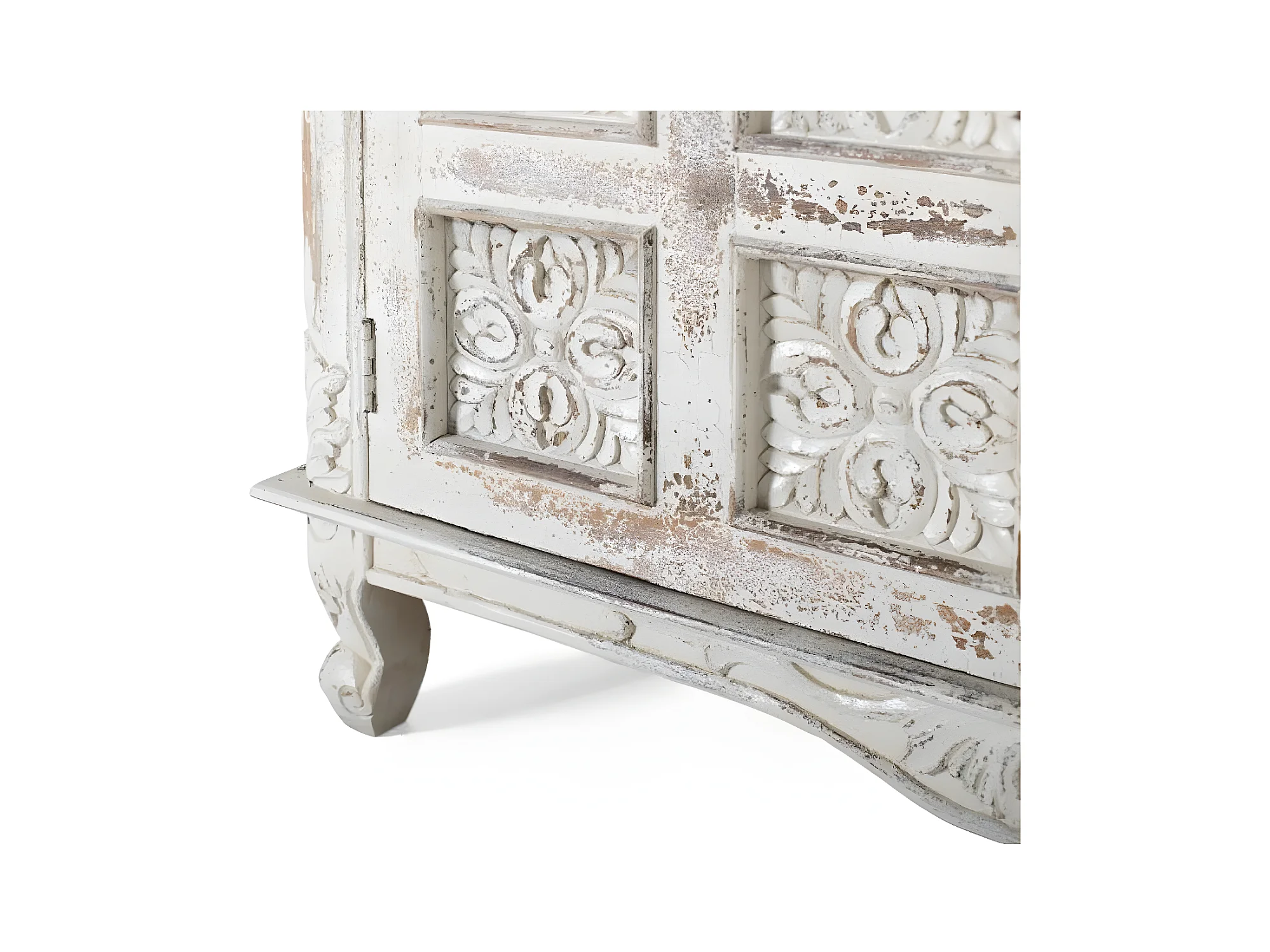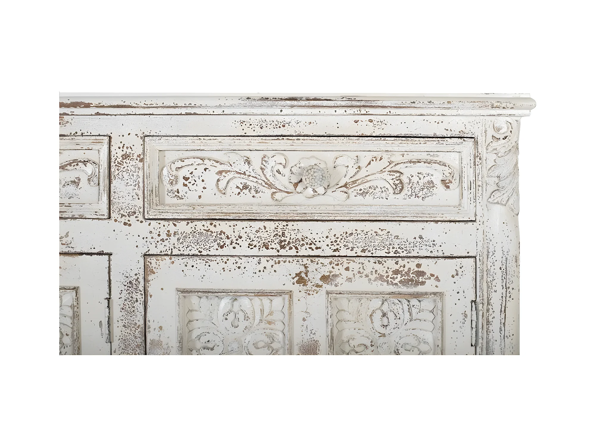 Bahut 4 tiroirs Bois-Fer Blanc - Yzaline Décoration d'Autrefois