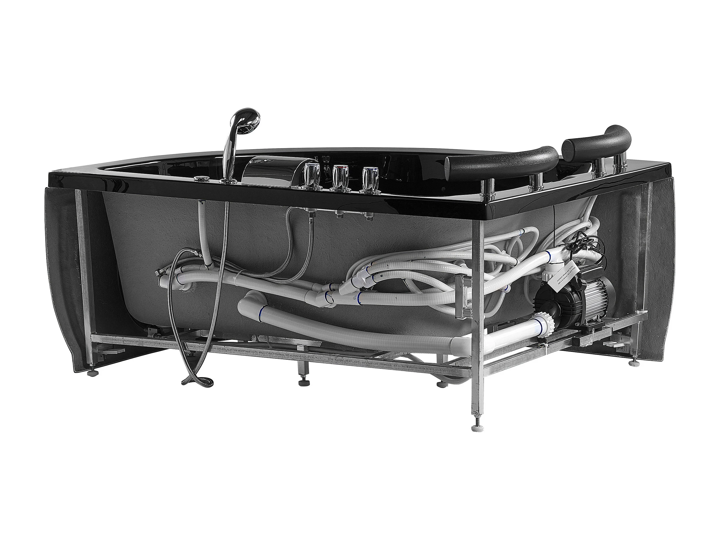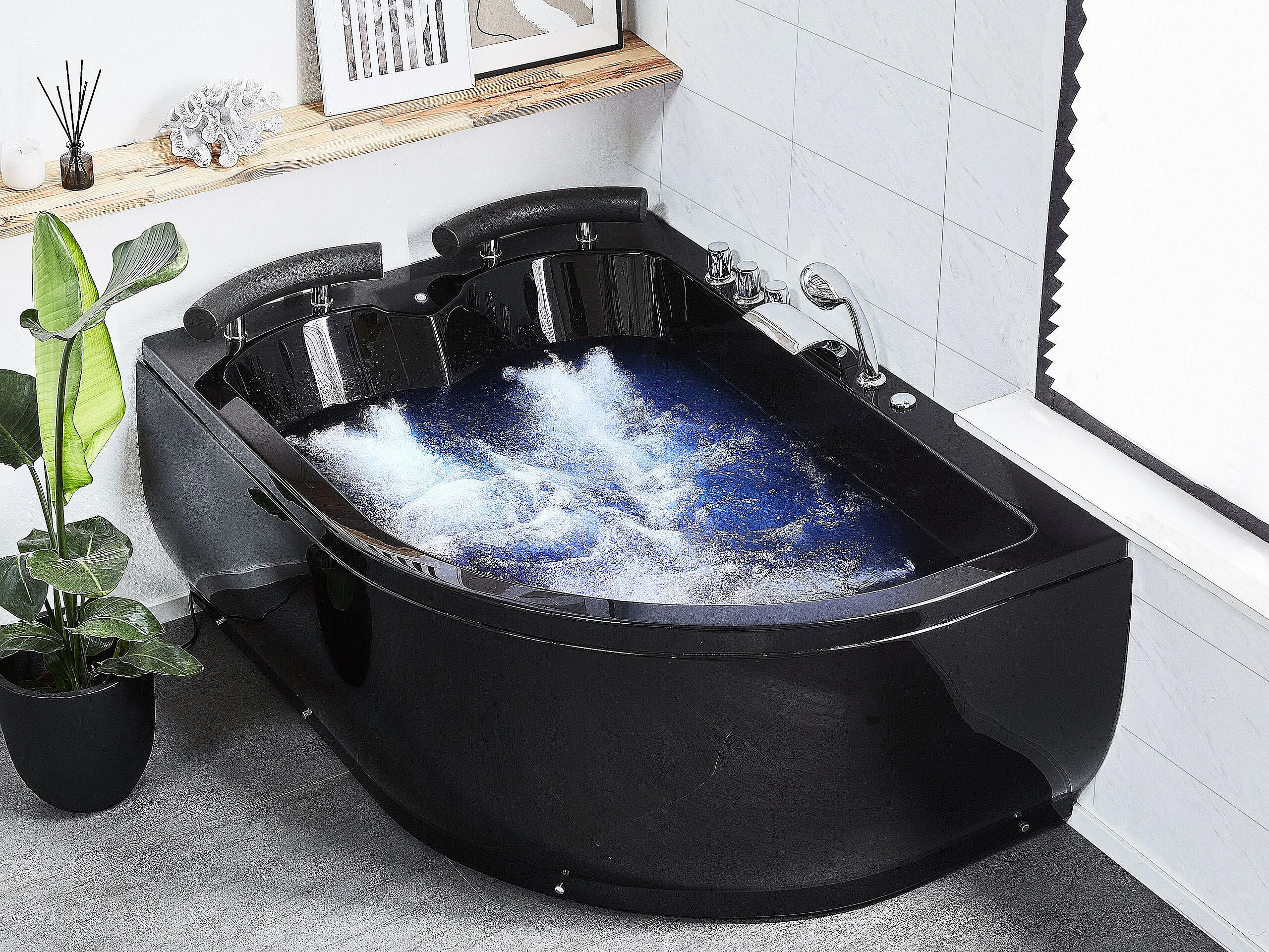 Baignoire d'angle à remous avec LED PARADISO Côté droit 158 x 113 cm Noir