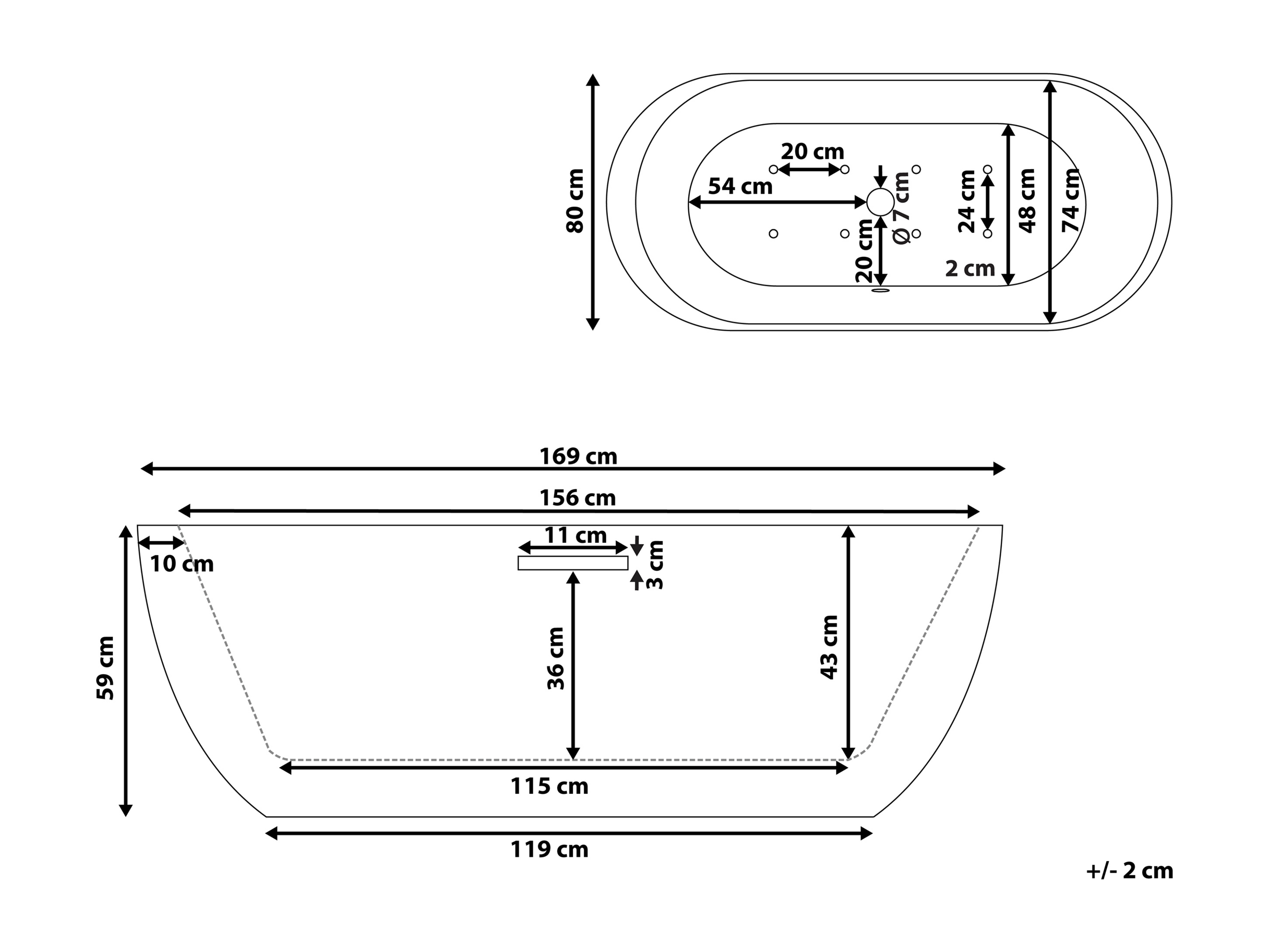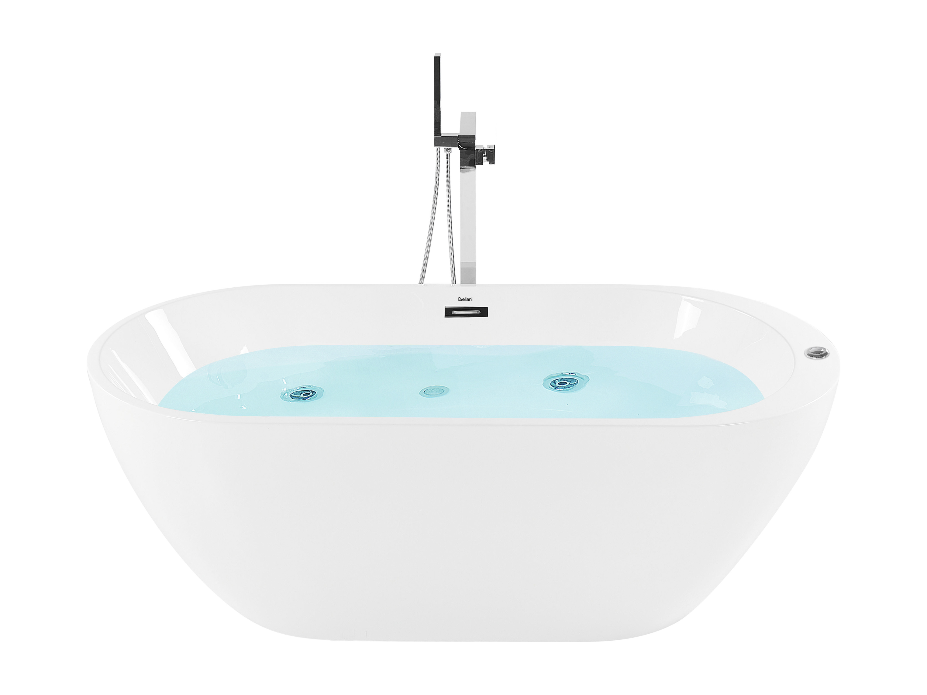 Baignoire balnéo îlot avec LED NEVIS 170 x 80 cm Blanc