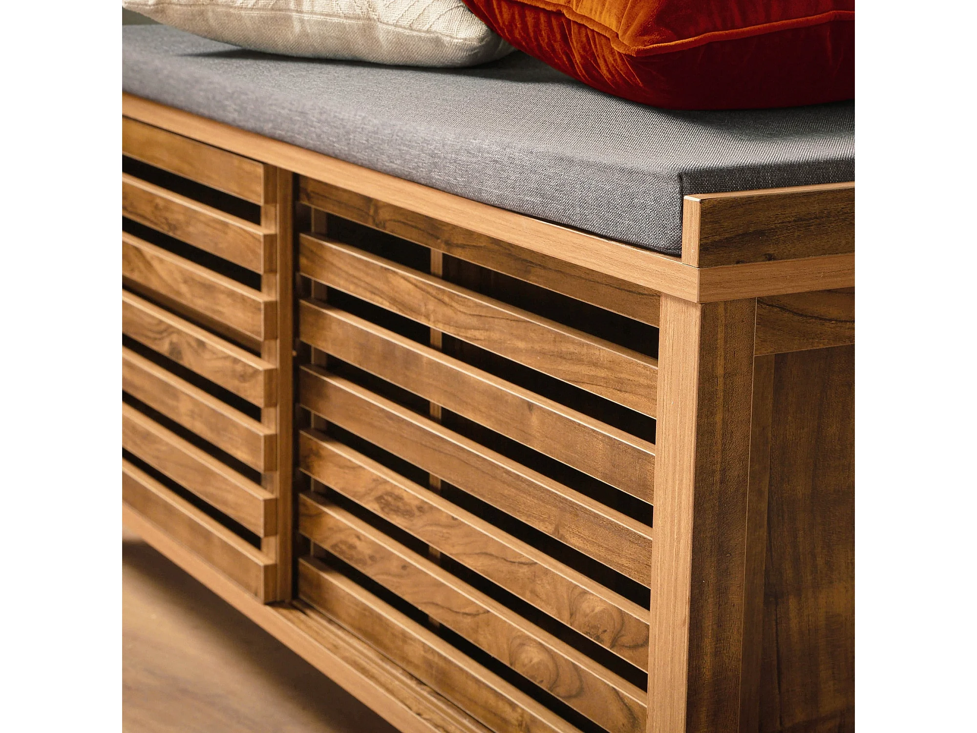 Banc à chaussures 2 portes coulissantes à lames ajourées L112 cm LIAM