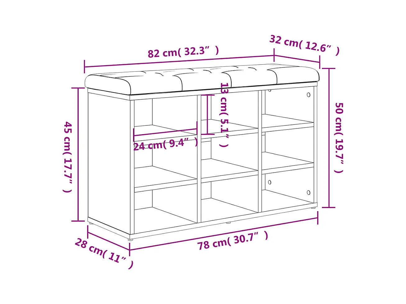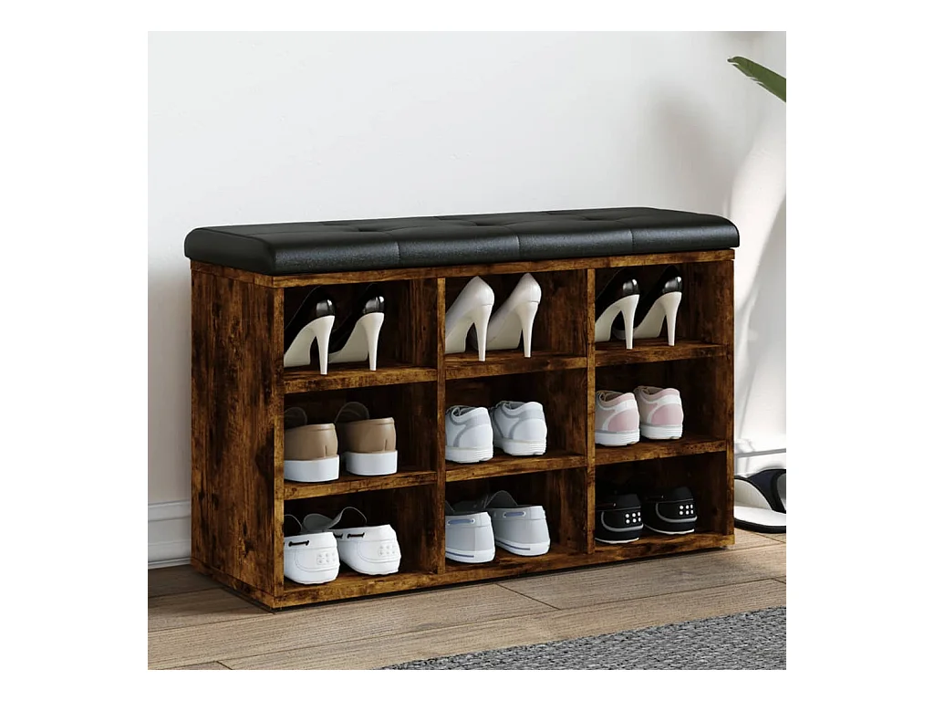 Banc à chaussures chêne fumé 82x32x50 cm bois d'ingénierie