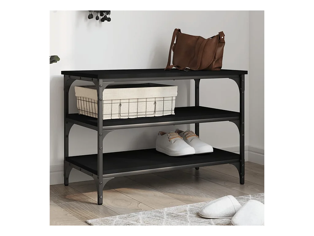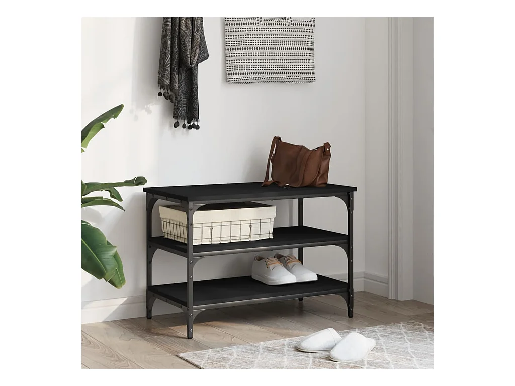 Banc à chaussures noir 70x38,5x49 cm bois d'ingénierie