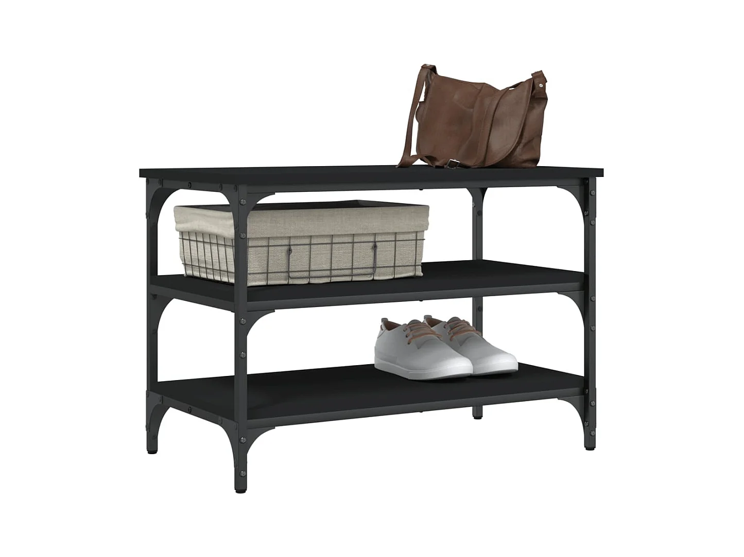 Banc à chaussures noir 82x32x45 cm bois d'ingénierie