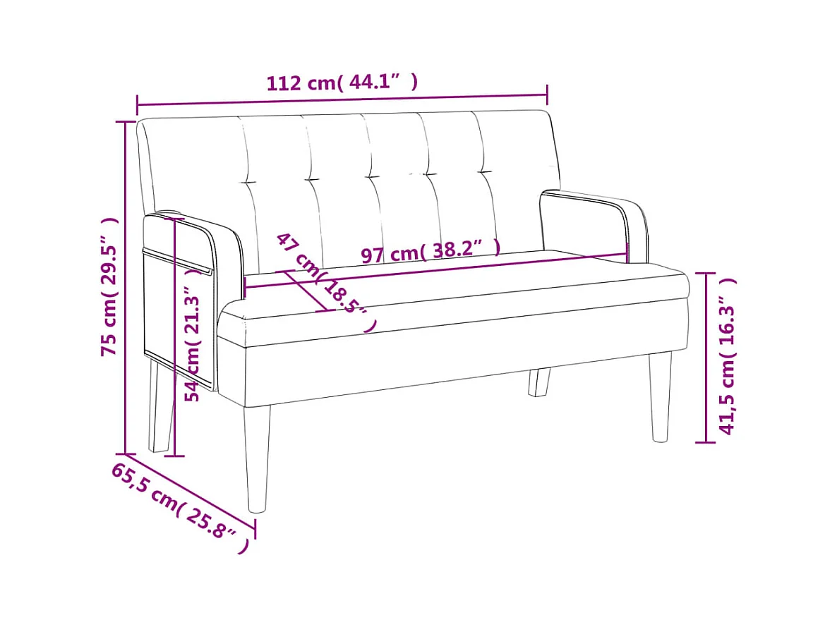Banc avec dossier noir 112x65,5x75 cm similicuir