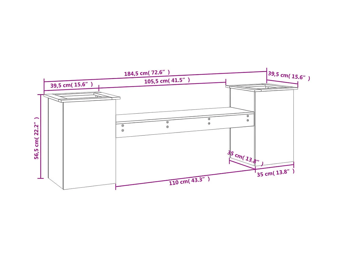 Banc avec jardinières 184,5x39,5x56,5cm bois massif de douglas