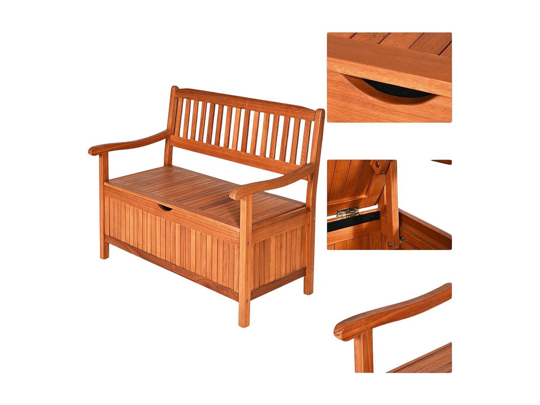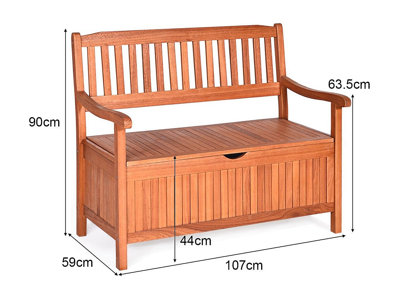 Banc de Jardin 2 Places 107 x 59 x 90 CM en Bois d'Acacia avec Compartiment de Rangement pour Jardin Terrasse Balcon