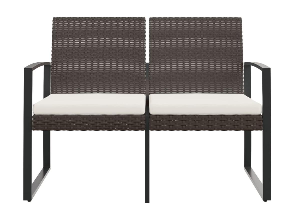 Banc de jardin à 2 places avec coussins marron PP rotin