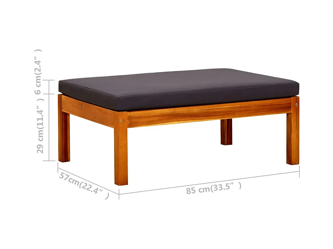 Banc de jardin Adirondack et coussins 126 cm bois massif acacia