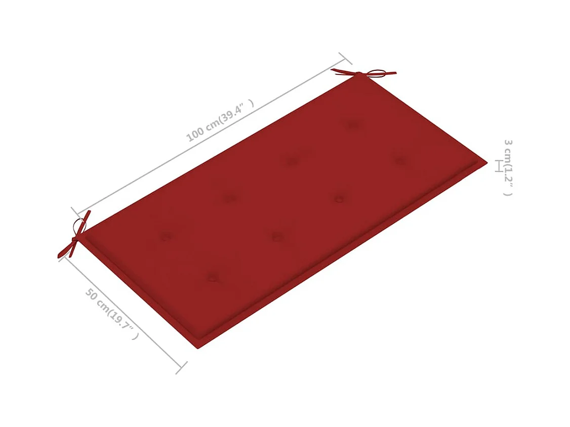Banc de jardin avec coussin rouge 112 cm Bois de teck massif