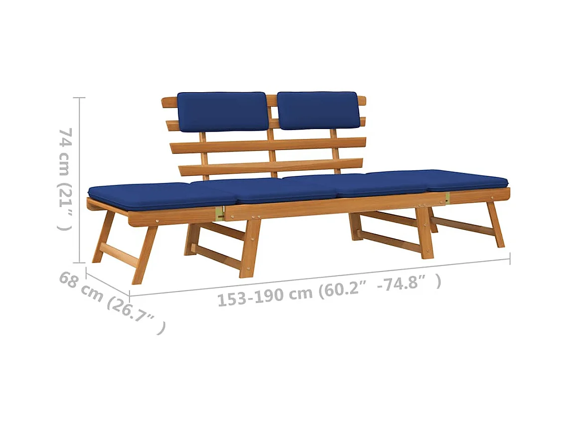 Banc de jardin avec coussins 2-en-1 190 cm Bois solide d'acacia