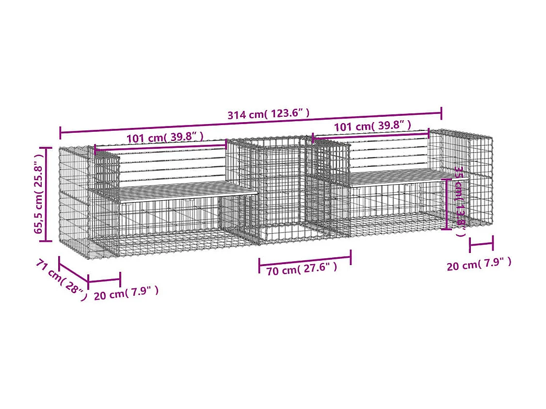 Banc jardin design gabion 287x71x65,5 cm bois massif de douglas