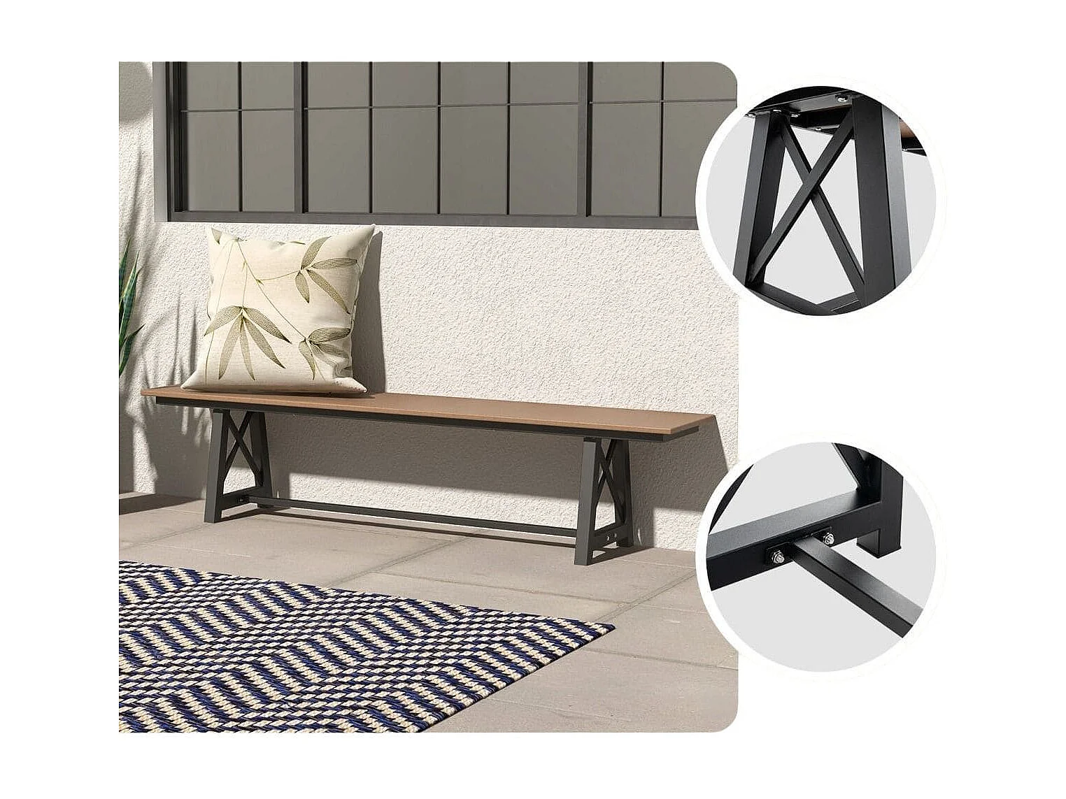 Banc d'Extérieur en HDPE pour 3 à 4 Personnes Cadre en Métal Banc de Patio Sans Dossier de 183 cm Capacité de 500 Kg Marron
