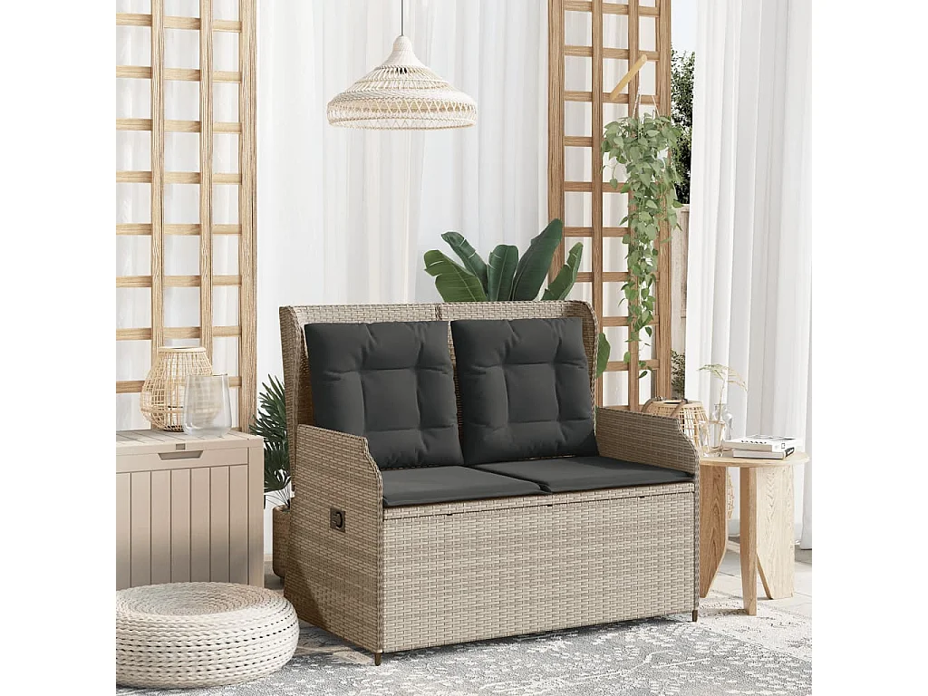 Banc inclinable de jardin et coussins gris clair résine tressée
