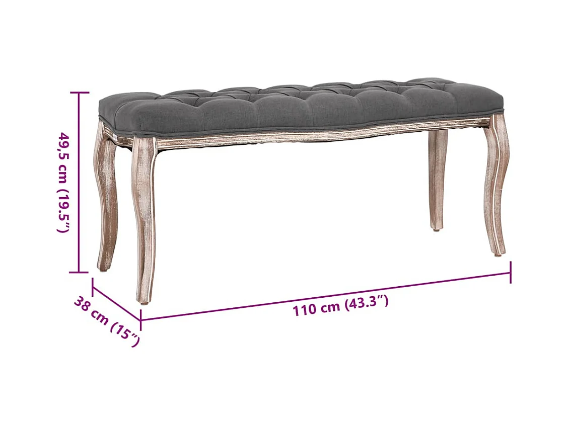 Banc Lin Bois solide 110x38x48 cm Gris foncé