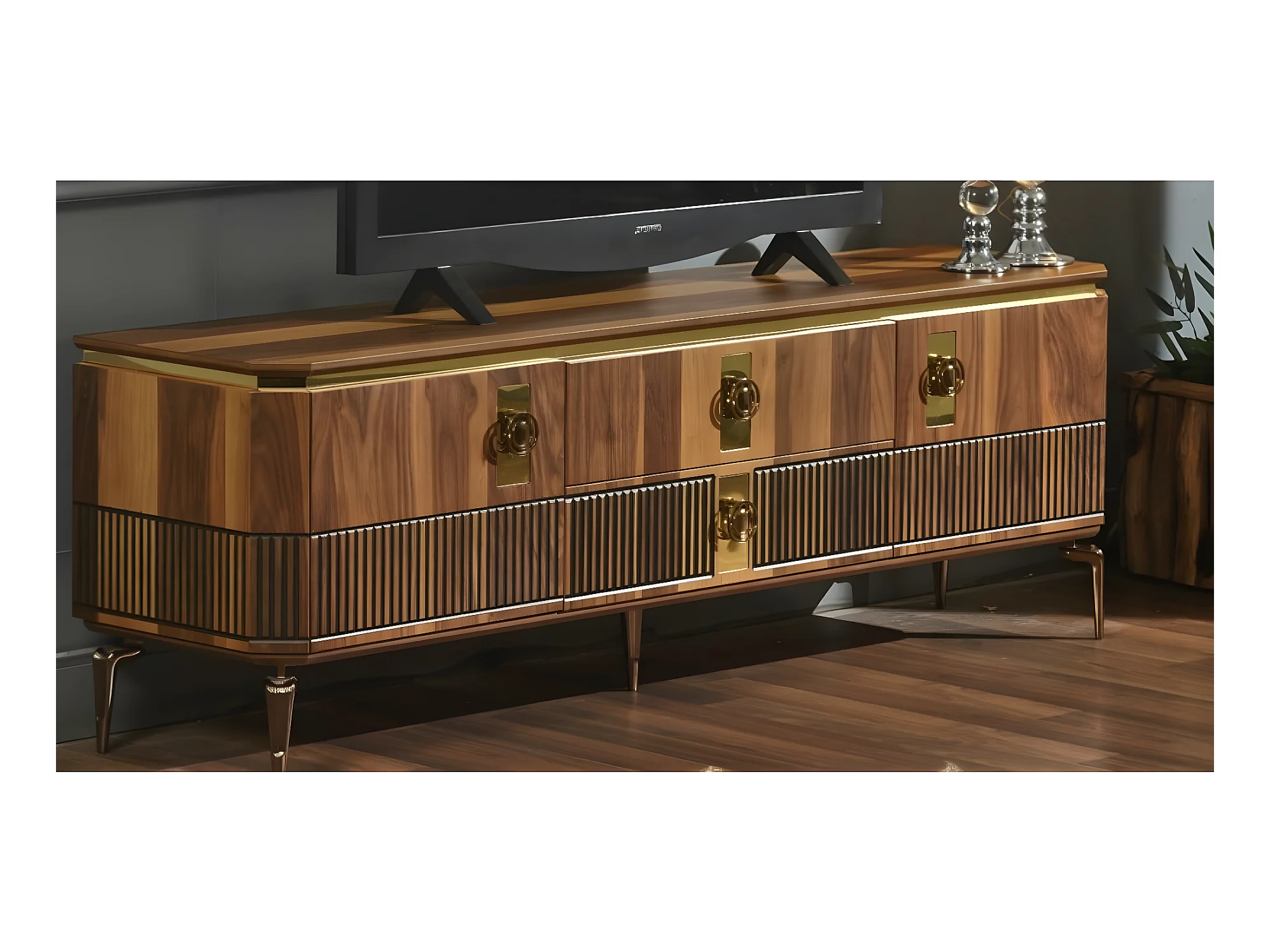 Banc TV Furnia Lux/Marron&Or