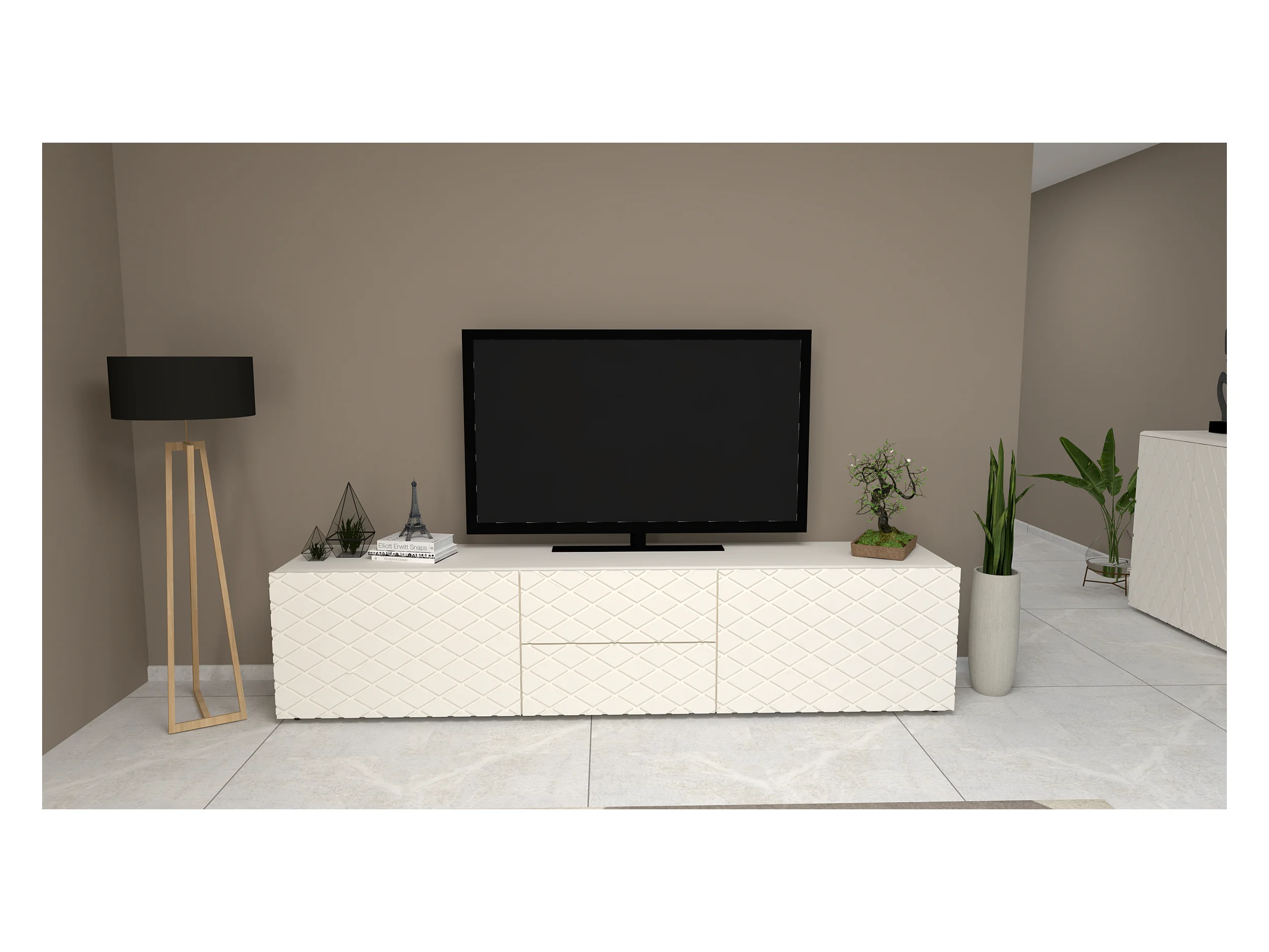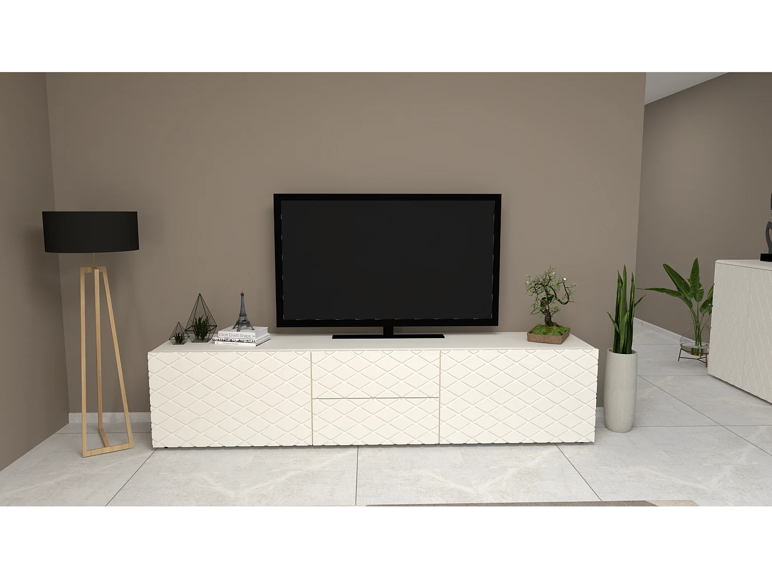 Table basse pivotante ronde avec 1 niche en MDF - Béton et blanc - JANITA