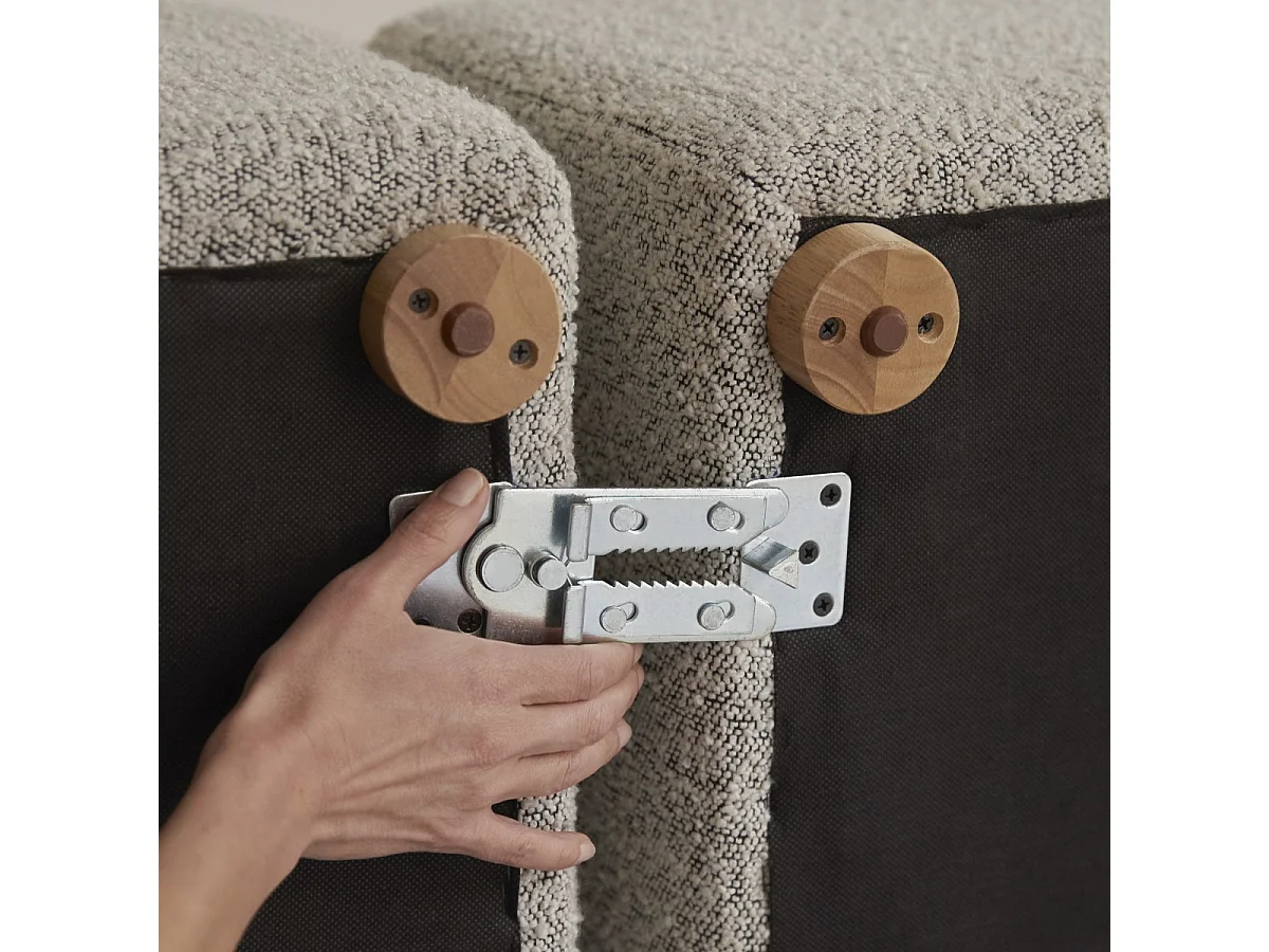 Banquette Swann modulable 2 places en bois d'acacia massif et tissu gris