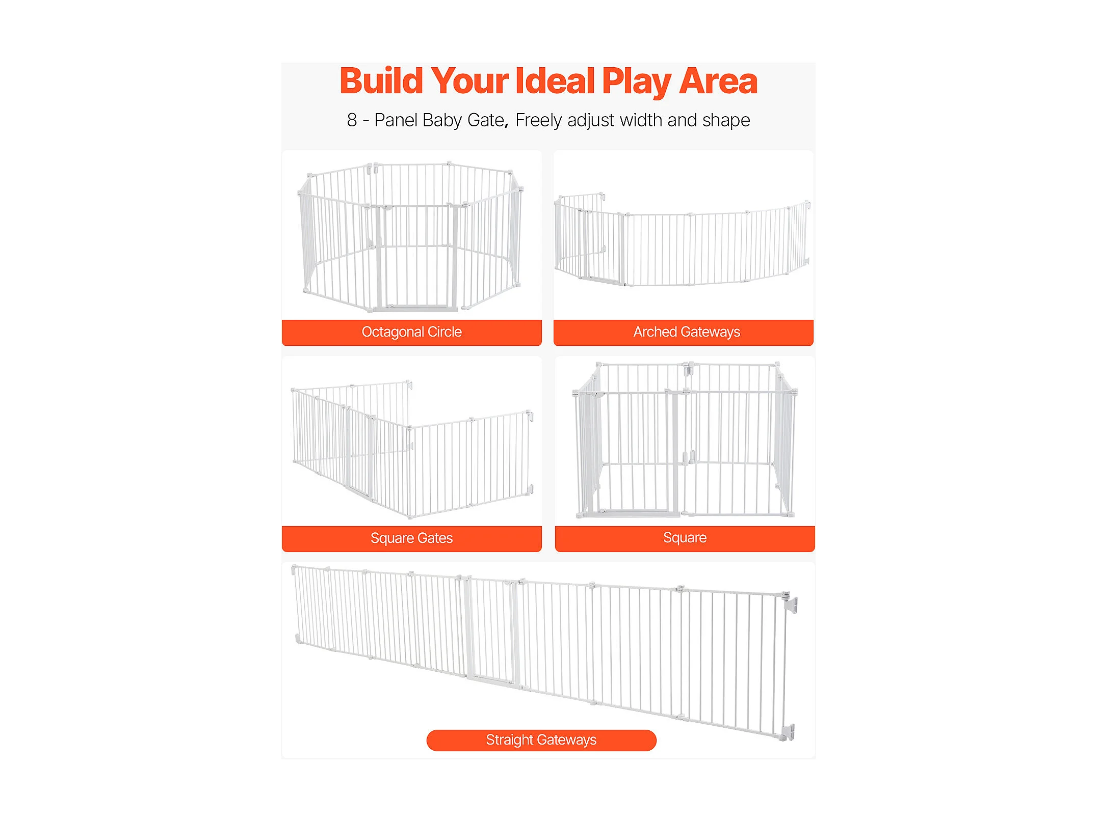 Barrière de Sécurité Animaux, SucceBuy Barrière Pliable pour Bébé et Animal de Compagnie 487,7 cm Largeur 71,1 cm Hauteur 8 Panneaux Blanche