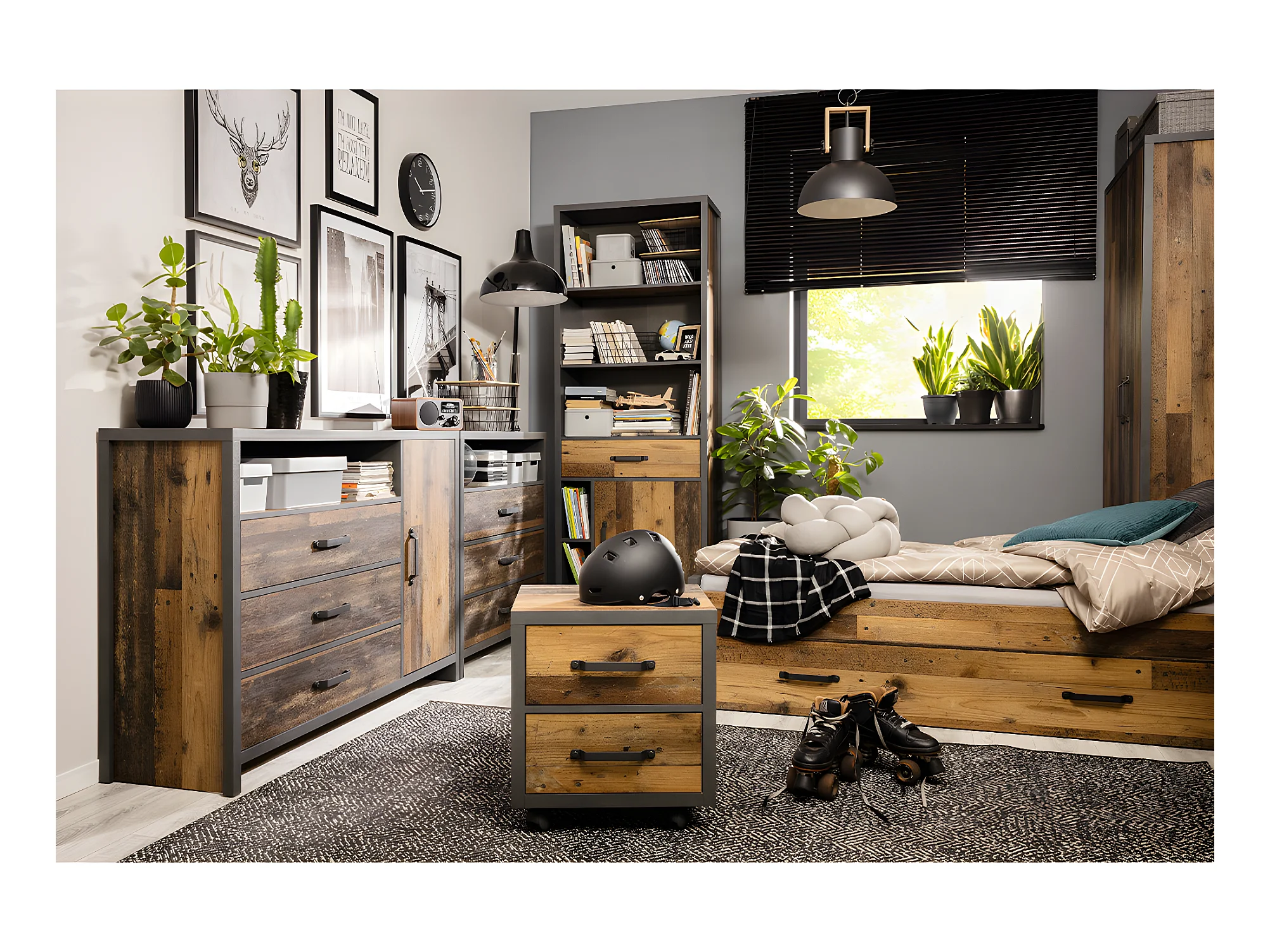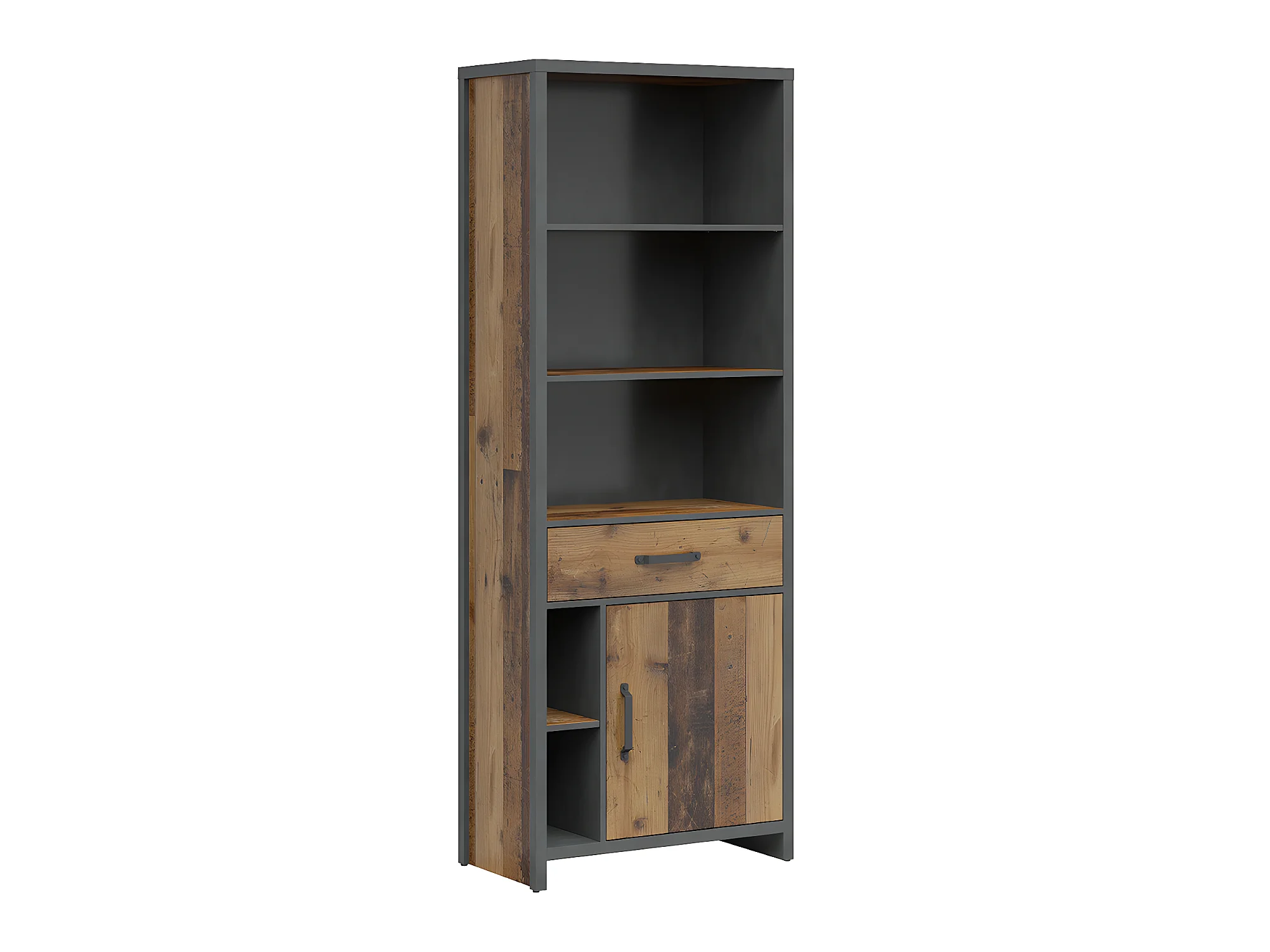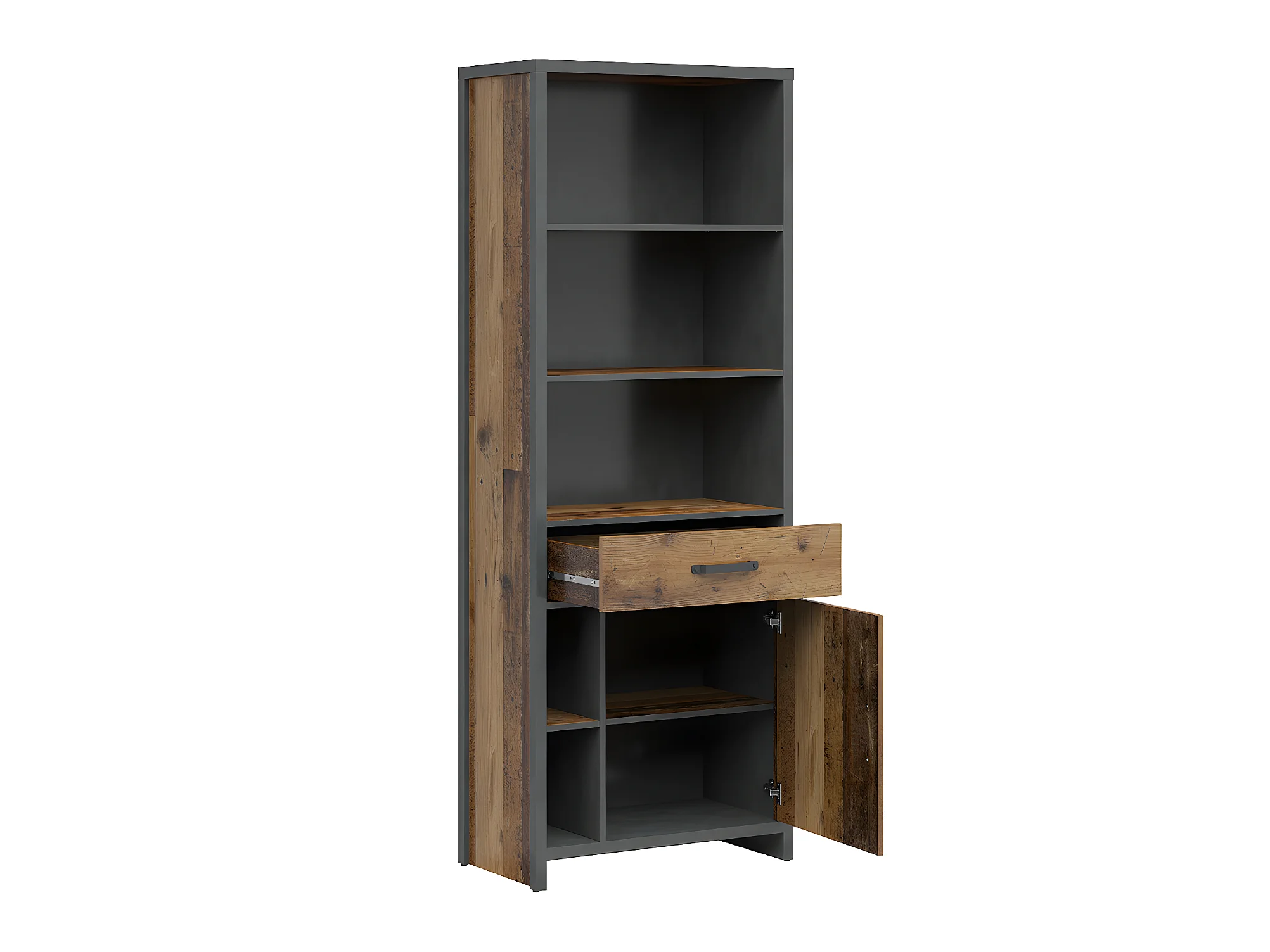 Bibliothèque 1 porte 1 tiroir Paul Bois et Gris anthracite