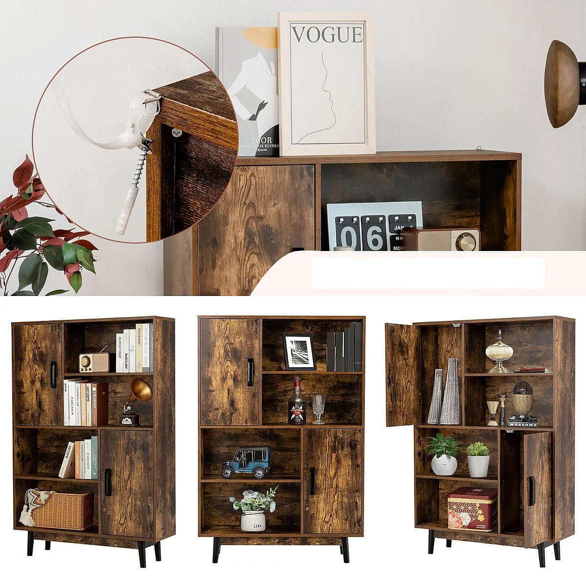 Donnez à votre maison une mise à niveau avec notre bibliothèque en bois autoportante !Cette bibliothèque à 4 niveaux organise vos livres, CD et autres objets essentiels du quotidien en ordre et à portée de main. Notre bibliothèque offre des options de stockage d'affichage dissimulées et ouvertes. Et vous le trouverez parfaitement intégré dans votre salon, votre chambre et votre bureau avec un style approprié. Cette bibliothèque étend ses fonctionnalités en servant de buffet, d'armoire latérale et de séparateur de pièce. Et les pieds en bois d'hévéa avec repose-pieds soutiennent le meuble de manière stable. Avec les conceptions anti-basculement, cette armoire est en sécurité autour de vos enfants ou animaux de compagnie. De plus, il est facile à assembler avec des instructions détaillées. Attributs :【Options de rangement infinies】Cette bibliothèque en bois à 4 niveaux comprend 2 portes de rangement pour cacher le désordre et 4 étagères ouvertes pour exposer votre collection de livres et vos décorations. Une hauteur moyenne vous permet de placer des photos, des plantes et d'autres objets essentiels du quotidien sur le dessus de l'armoire.【Apportez dans le bon style】Notre armoire met en place des portes et des étagères de manière irrégulière mais harmonieuse pour apporter à votre intérieur un mobilier unique. Cette bibliothèque s'intégrera parfaitement dans votre salon, votre chambre ou votre bureau et s'agencera parfaitement avec les décorations existantes.【Conception stable et sûre】Reposant sur des pieds en bois d'hévéa massif avec des patins anti-rayures, cette armoire de rangement à 4 niveaux est stable et équilibrée avec une capacité de charge élevée. Les dispositifs anti-basculement fixent fermement la bibliothèque contre les murs pour éviter les chutes accidentelles et renforcer la sécurité de la famille.【Mobilier multifonctionnel】En plus de rassembler vos livres et CD, cette bibliothèque sert également d'étagère de rangement, d'armoire de buffet de cuisine, etc. Plusieurs de ces bibliothèques peuvent former une ligne de séparateurs de pièce pour mettre à niveau et améliorer la configuration de la pièce.【Facile à assembler et à dimensionner】Pour vous aider à assembler avec succès, cette armoire de rangement est livrée avec des instructions détaillées et des pièces clairement étiquetées. Une fois installée, cette bibliothèque en bois mesure 80 x 24 x 120 cm (L x l x H), chaque étagère supportant 10 kg, le dessus du meuble 20 kg. Caractéristiques :Options de rangement avec 2 portes, 4 étagères ouvertes et un dessus d'armoire platOrganisez soigneusement vos collections et vos essentiels quotidiens, apportez de l'ordre et du style dans votre maison.Dispositifs anti-basculement pour éviter l'effondrement accidentelPieds en bois de caoutchouc rendent la bibliothèque stable et fiableJambes sont équipées de coussinets anti-rayures pour améliorer la stabilité.Fonctions polyvalentes telles qu'une bibliothèque, une étagère de rangement, un buffet, un séparateur de pièce et plus encoreCorrespondance universelle pour la plupart de la maison et du bureauCapacité maximale de chaque étagère 10 kg, dessus de meuble 20 kgAssembler n'est pas une évidence avec des instructions détaillées