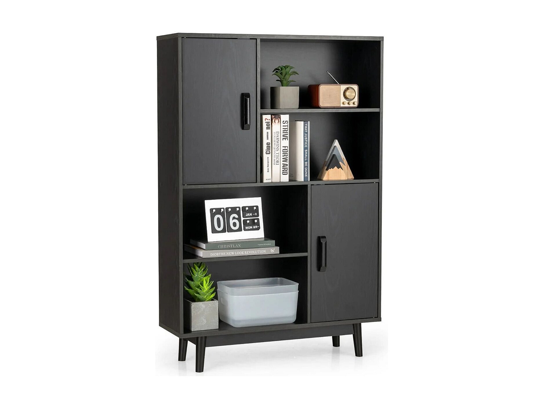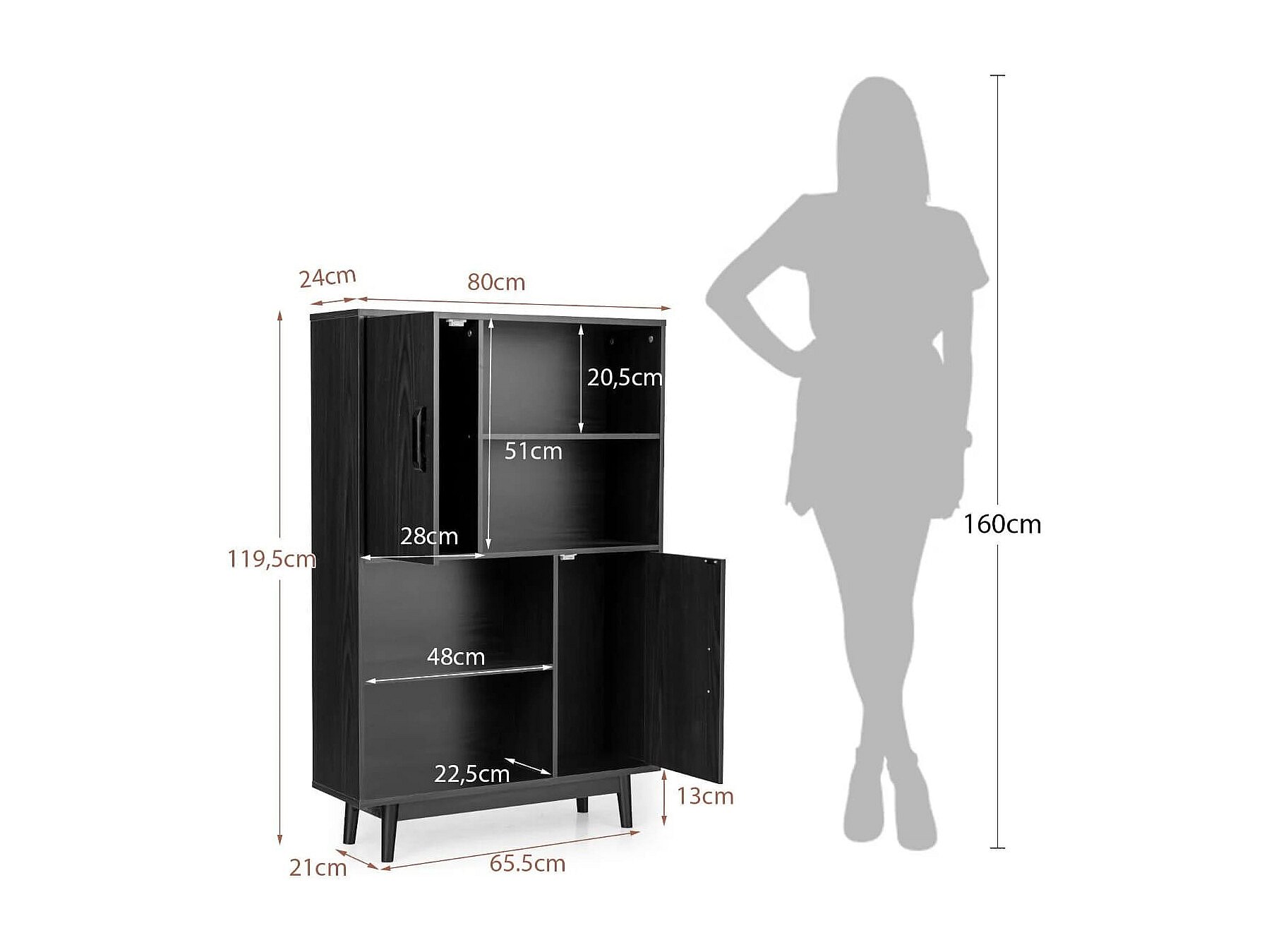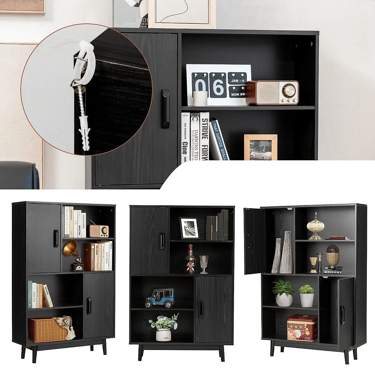 Bibliothèque à 4 Niveaux 80 x 24 x 119,5 CM Meuble de Rangement avec portes Étagères et Dispositif Anti-basculement Noir