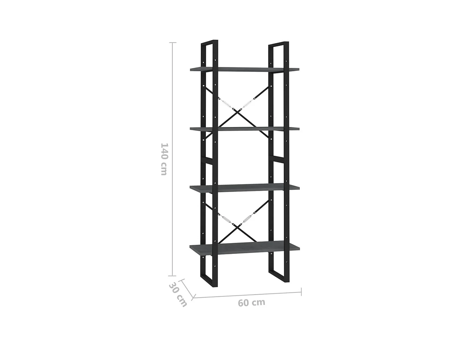 Bibliothèque à 4 niveaux gris 40x30x140 cm bois d'ingénierie