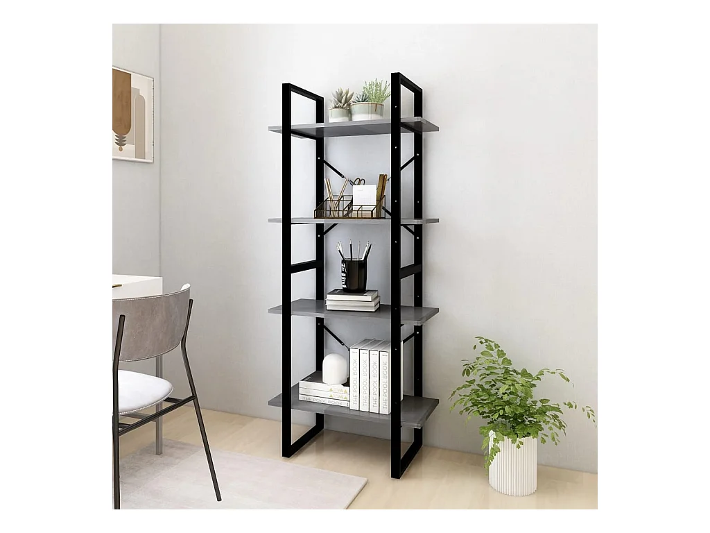 Bibliothèque 4 niveaux Sonoma gris 60x30x140 cm