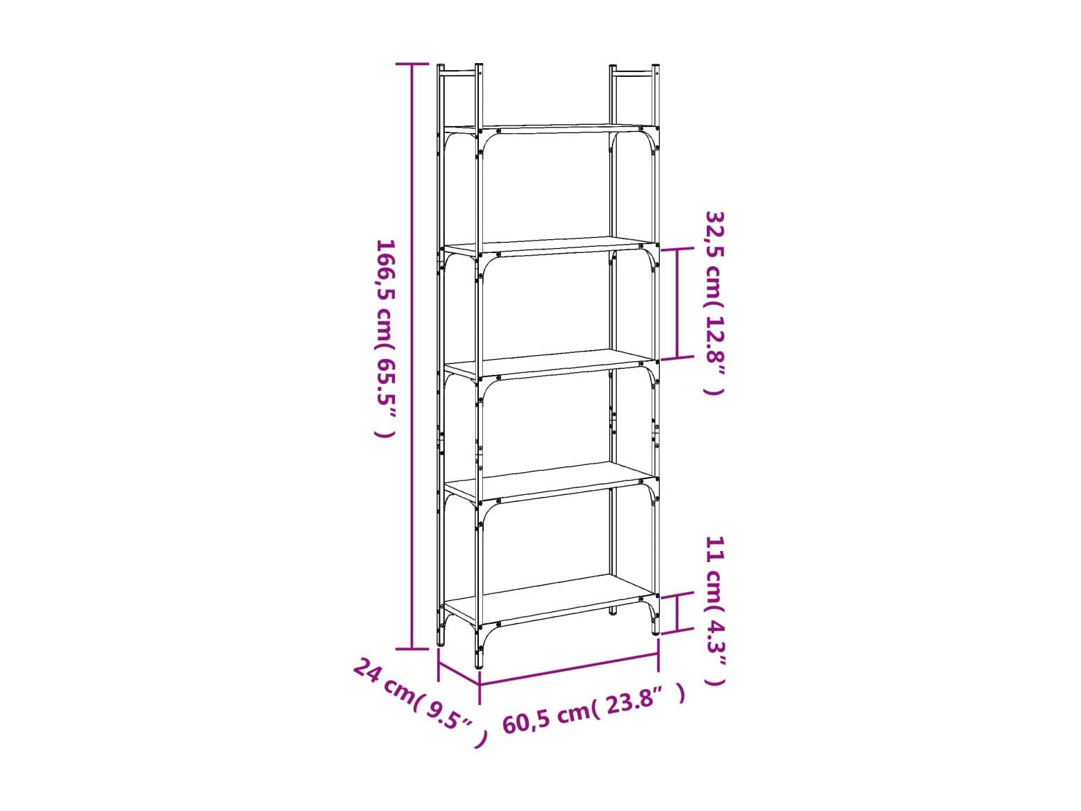 Bibliothèque à 5 niveaux noir 60,5x24x166,5cm bois d'ingénierie