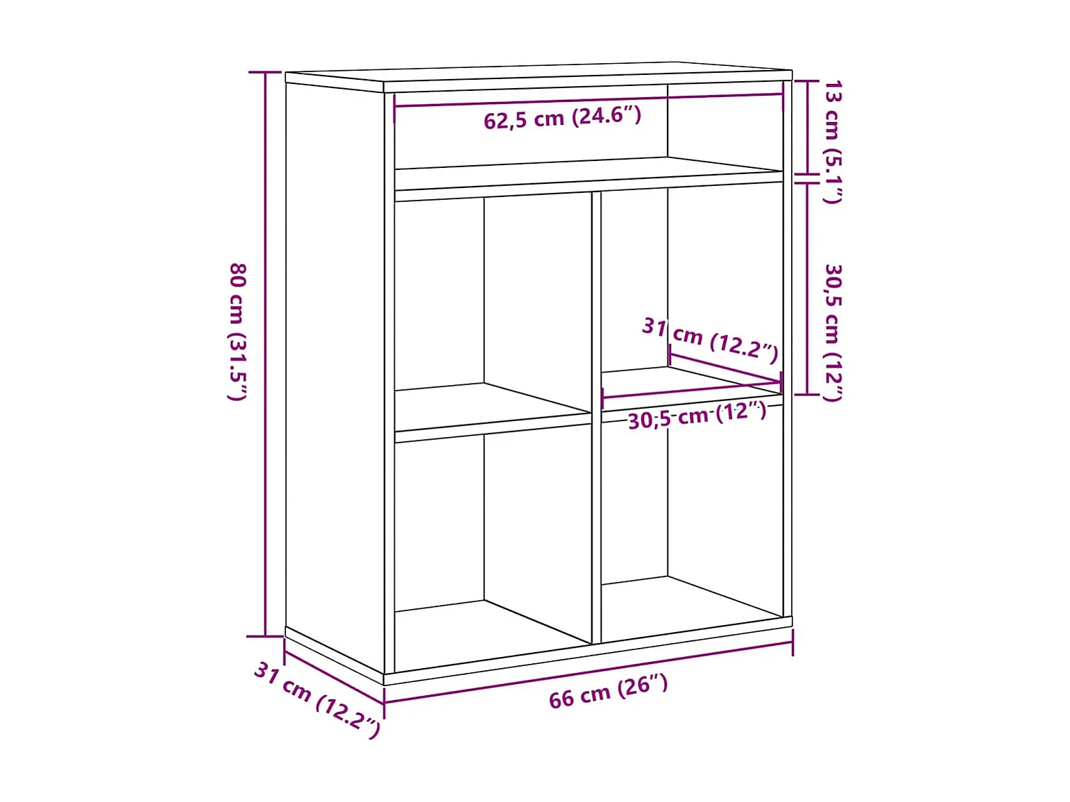 Bibliothèque vieux bois 66x31x80 cm bois d'ingénierie