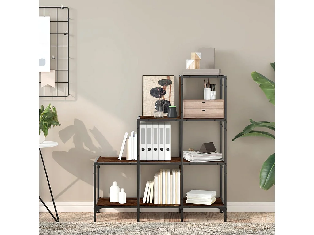 Bibliothèque chêne fumé 92x30x102 cm bois d'ingénierie et métal