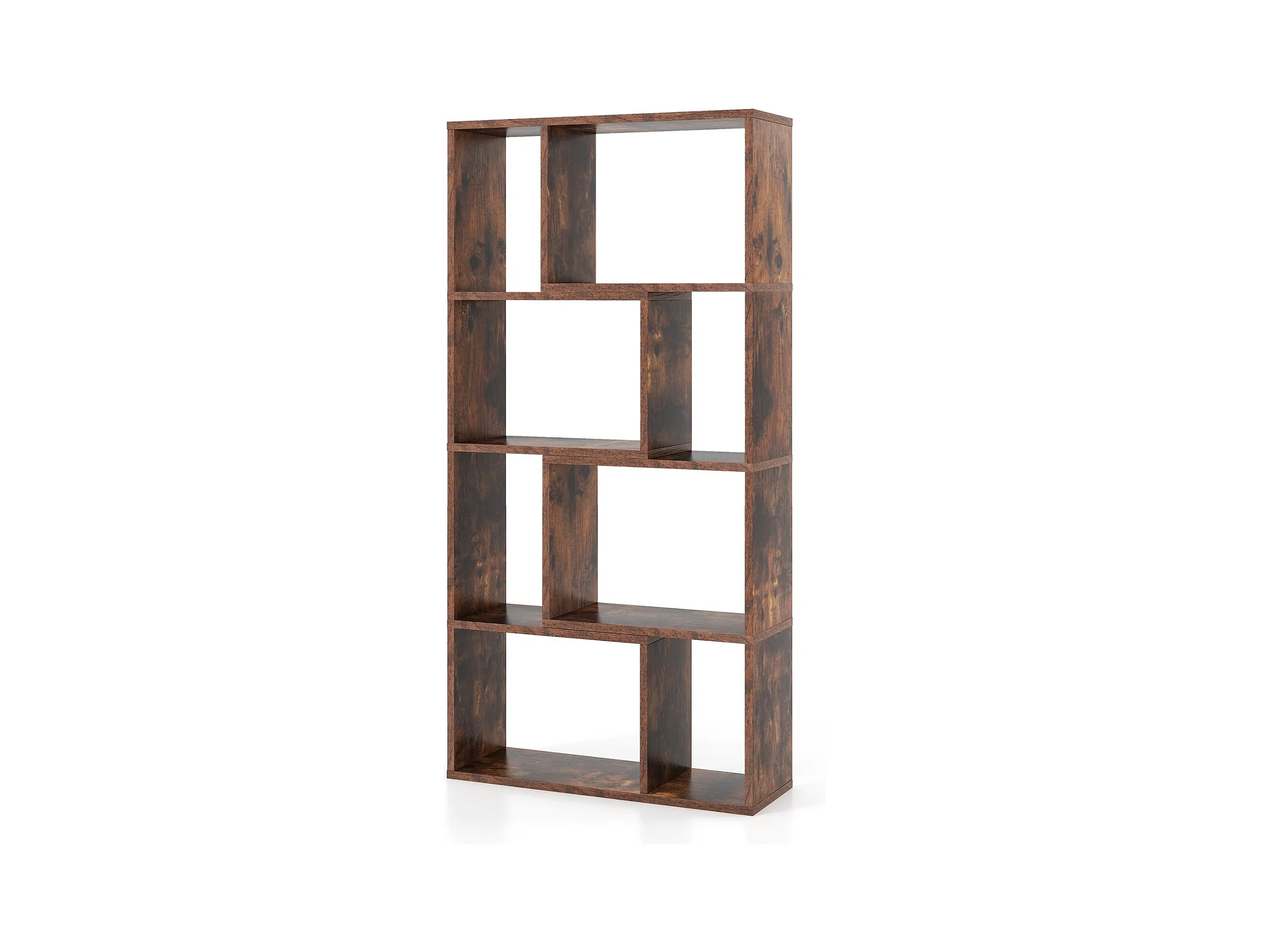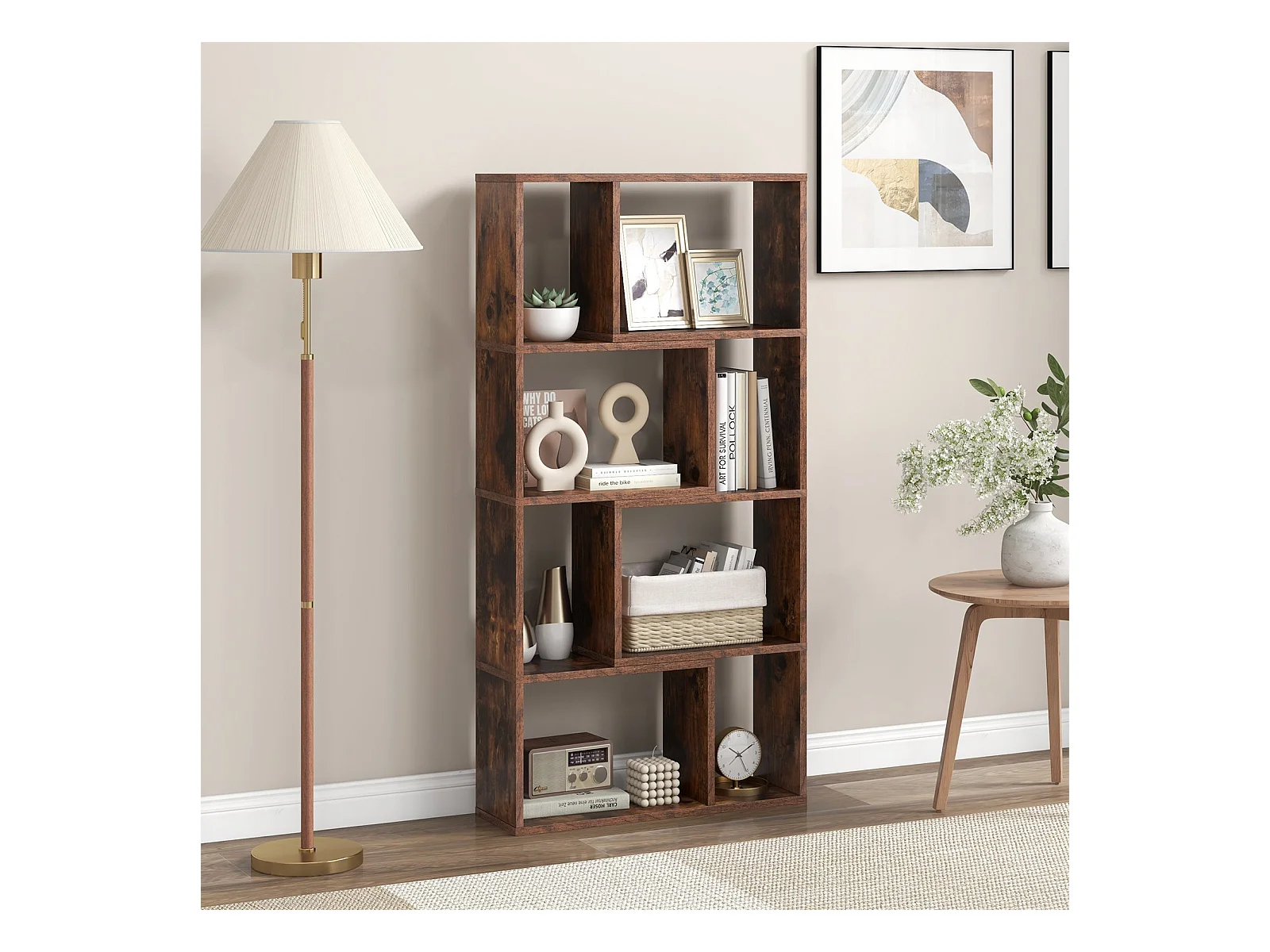 Bibliothèque Géométrique à 4 Niveaux 120 cm de Haut Etagères Ouvertes de Rangement Moderne à 8 Cases Armoire Autoportante Café