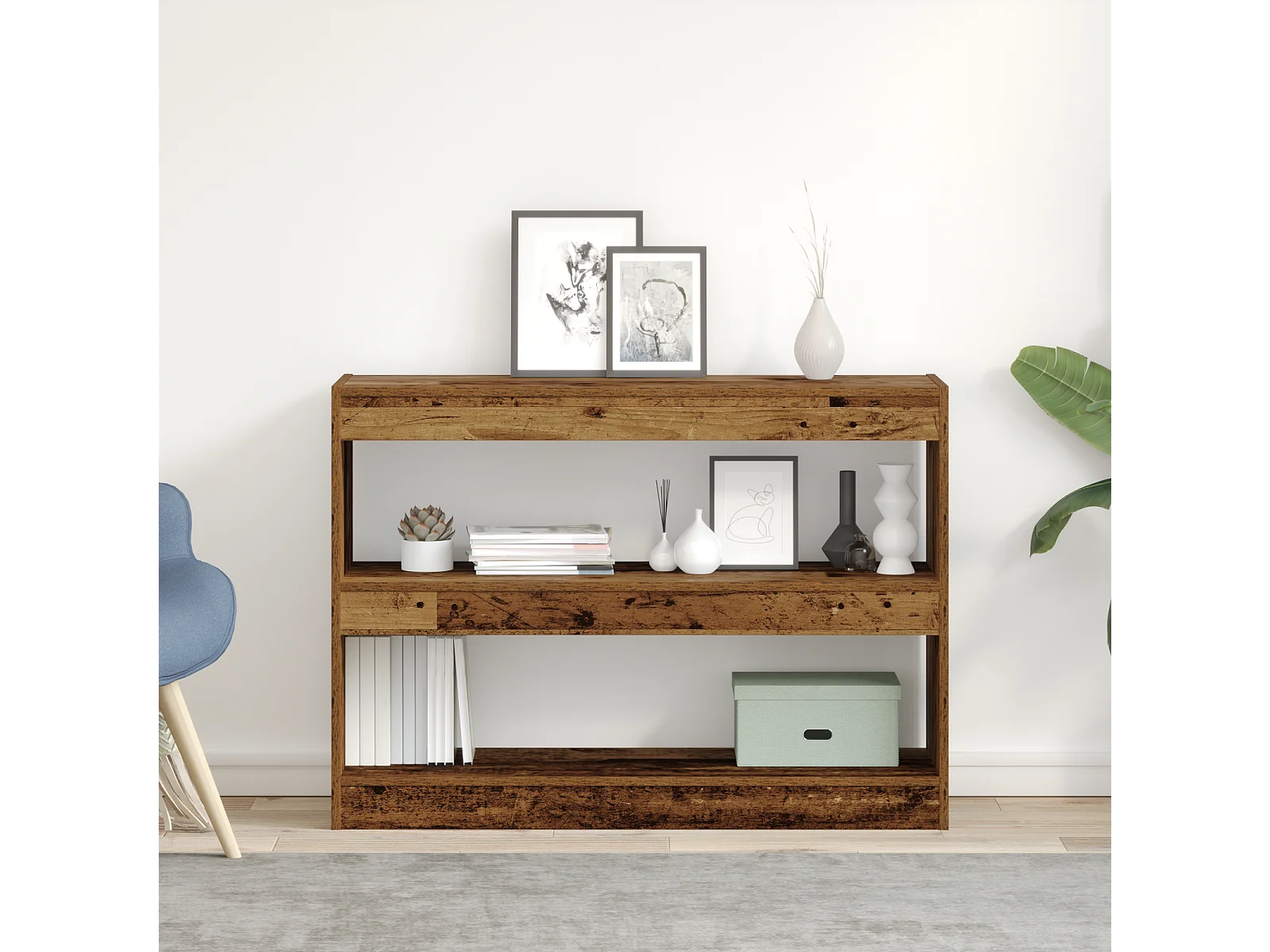 Bibliothèque/Paravent en bois vieilli, 100x30x72 cm, Fabriqué en bois reconstitué