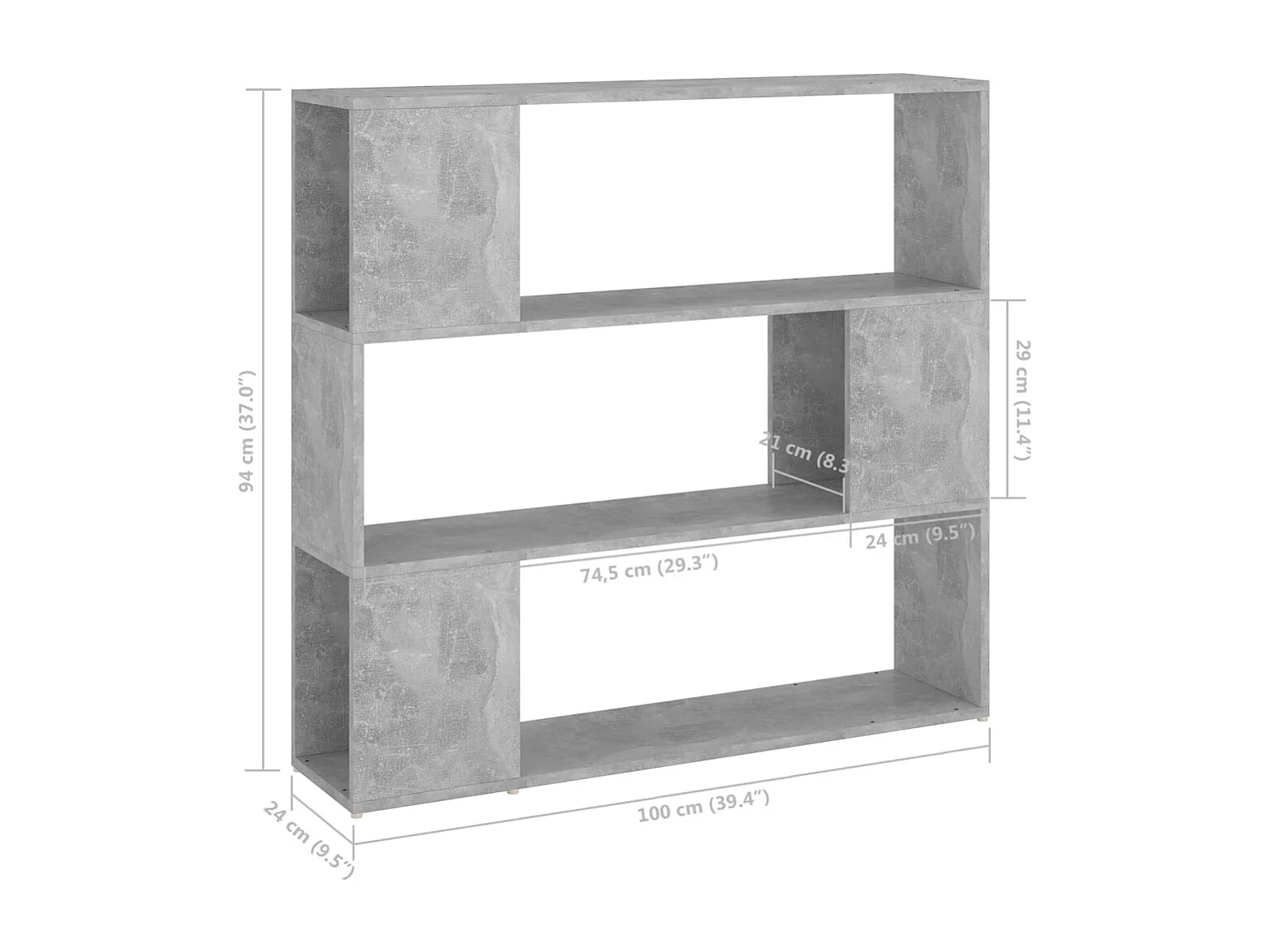 Bibliothèque/Séparateur de pièce Gris béton 100x24x94 cm
