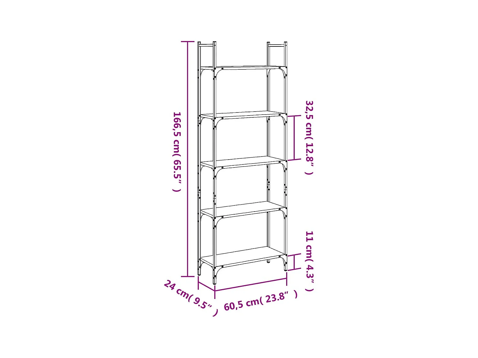 Bibliothèque à 5 niveaux sonoma gris 60,5x24x166,5 cm