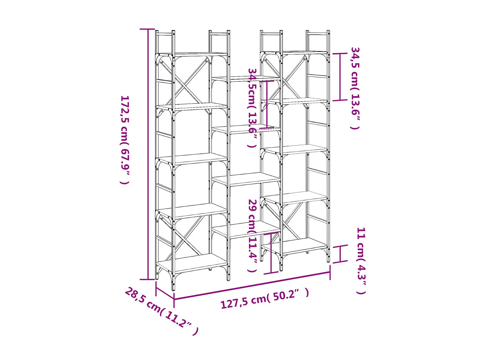 Étagère séparatrice de pièce 4 niveaux sonoma gris