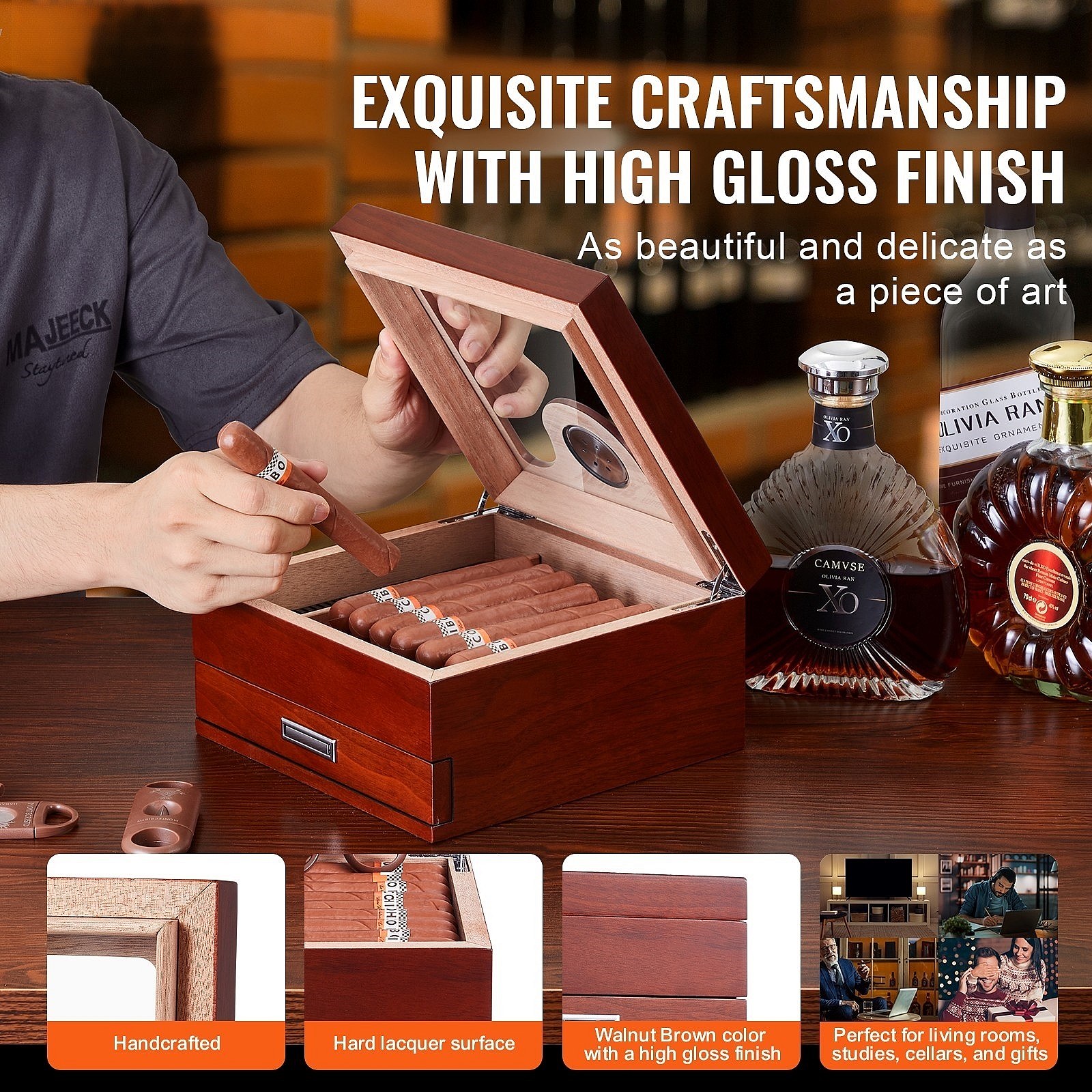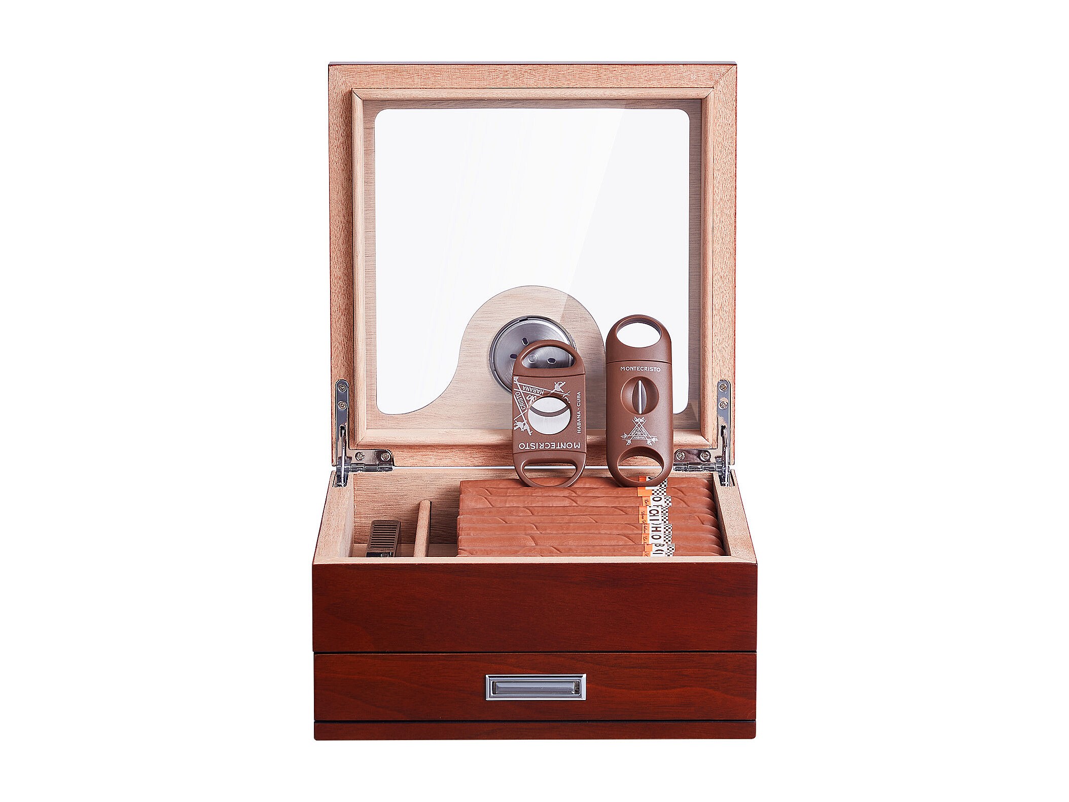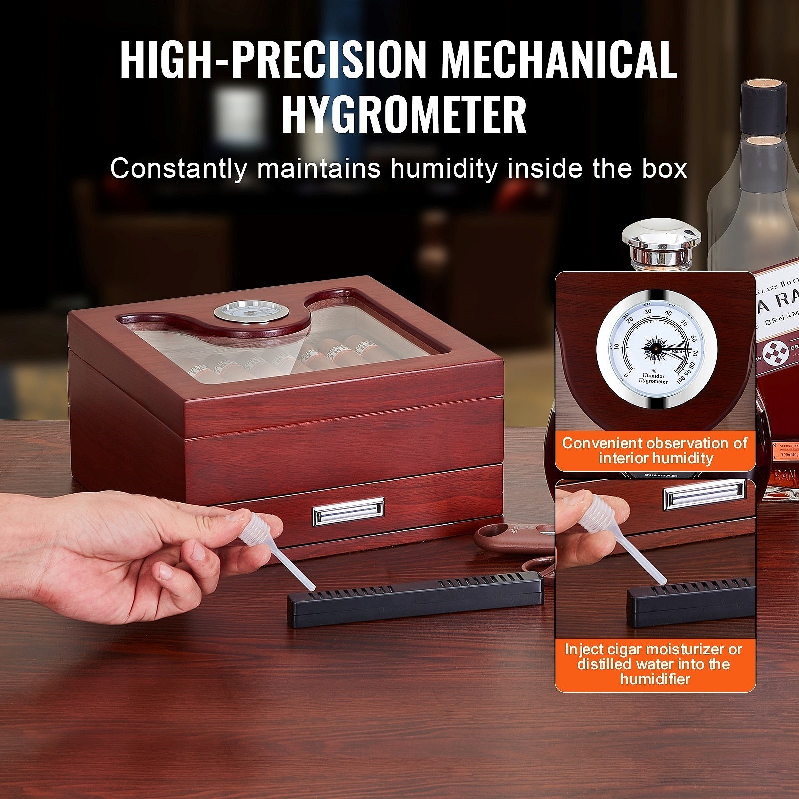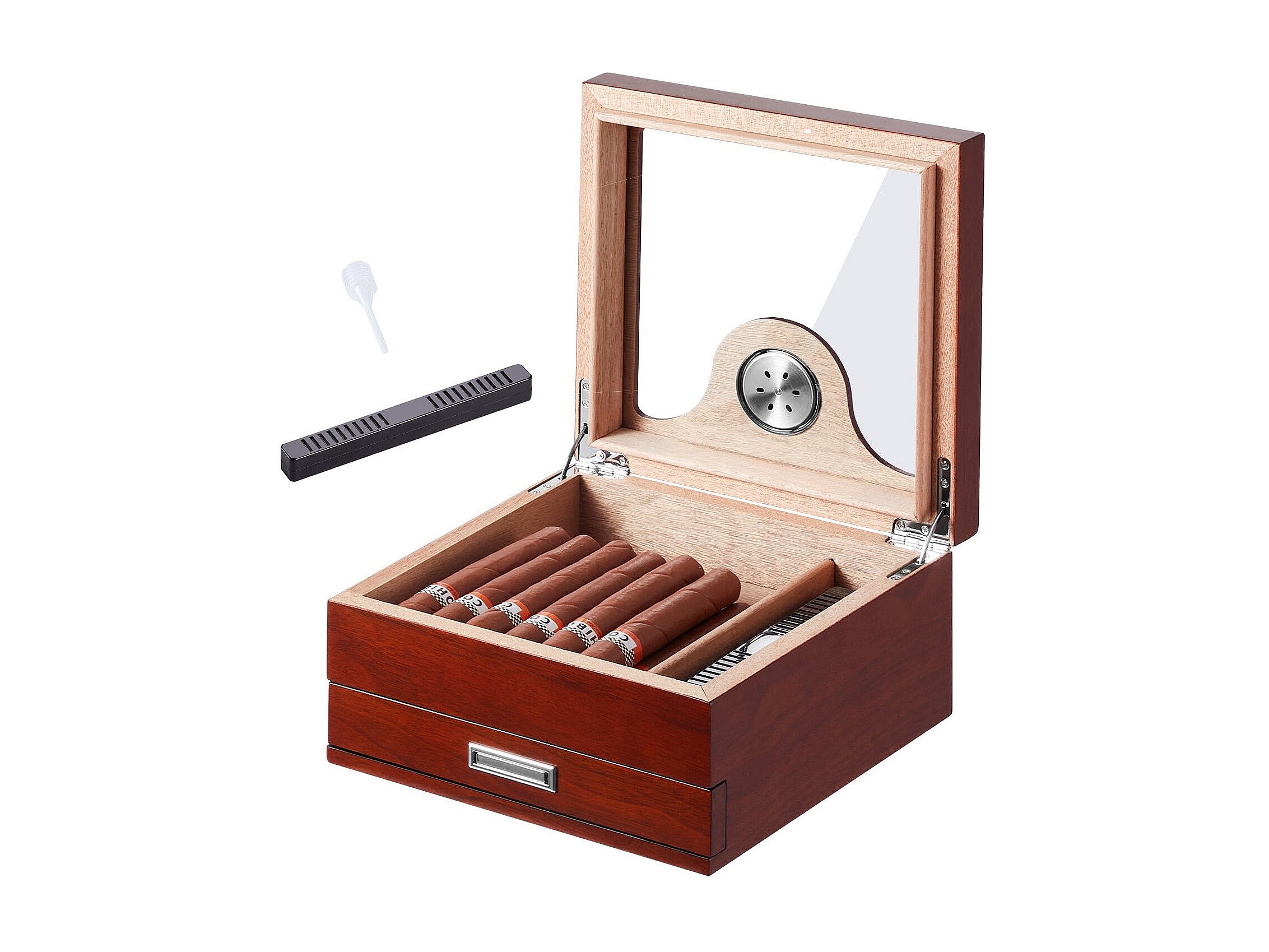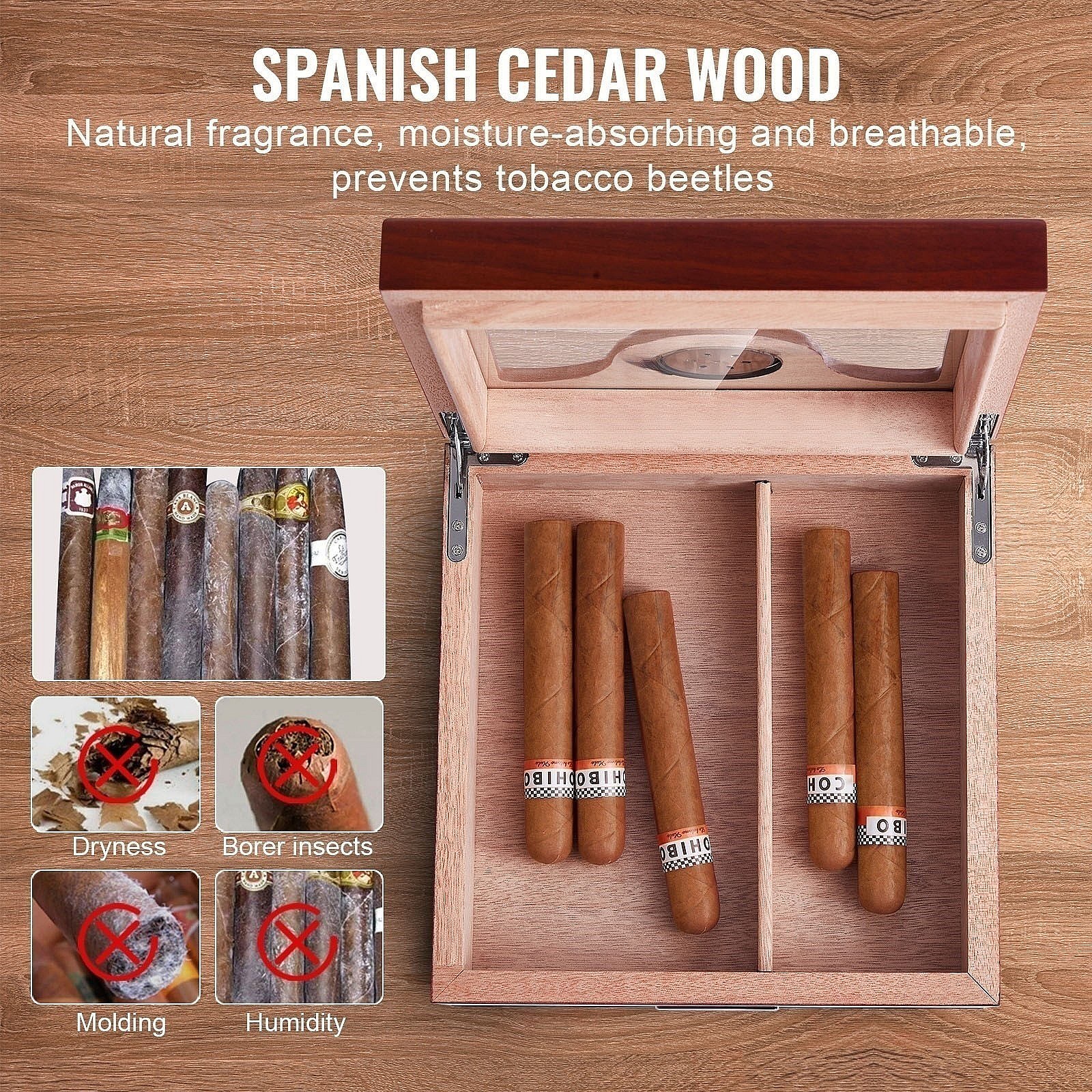 Boîte à Cigares SucceBuy 35 Cave à Cigares avec Plateau en Verre en Cèdre avec Hygromètre et Tiroir