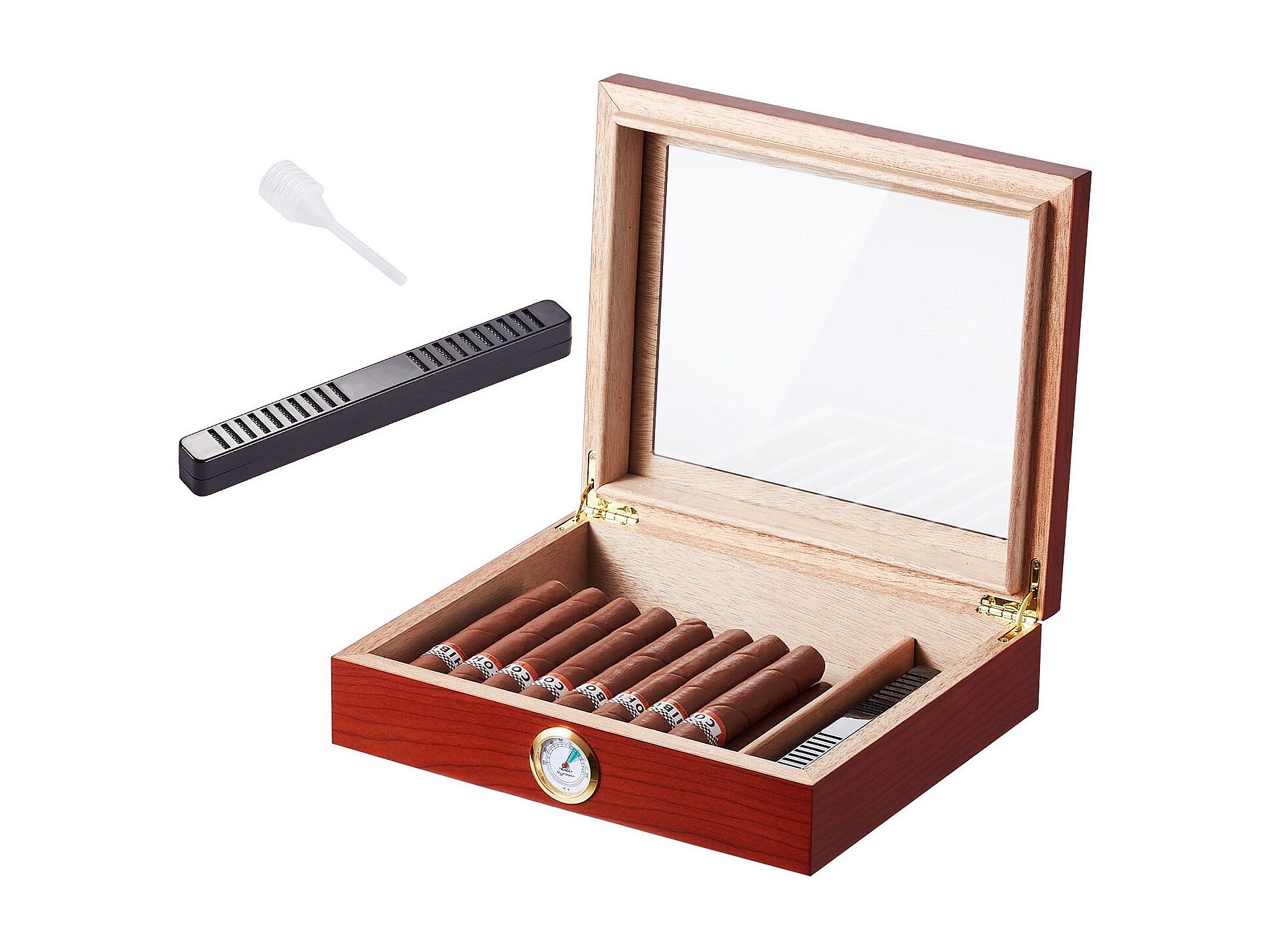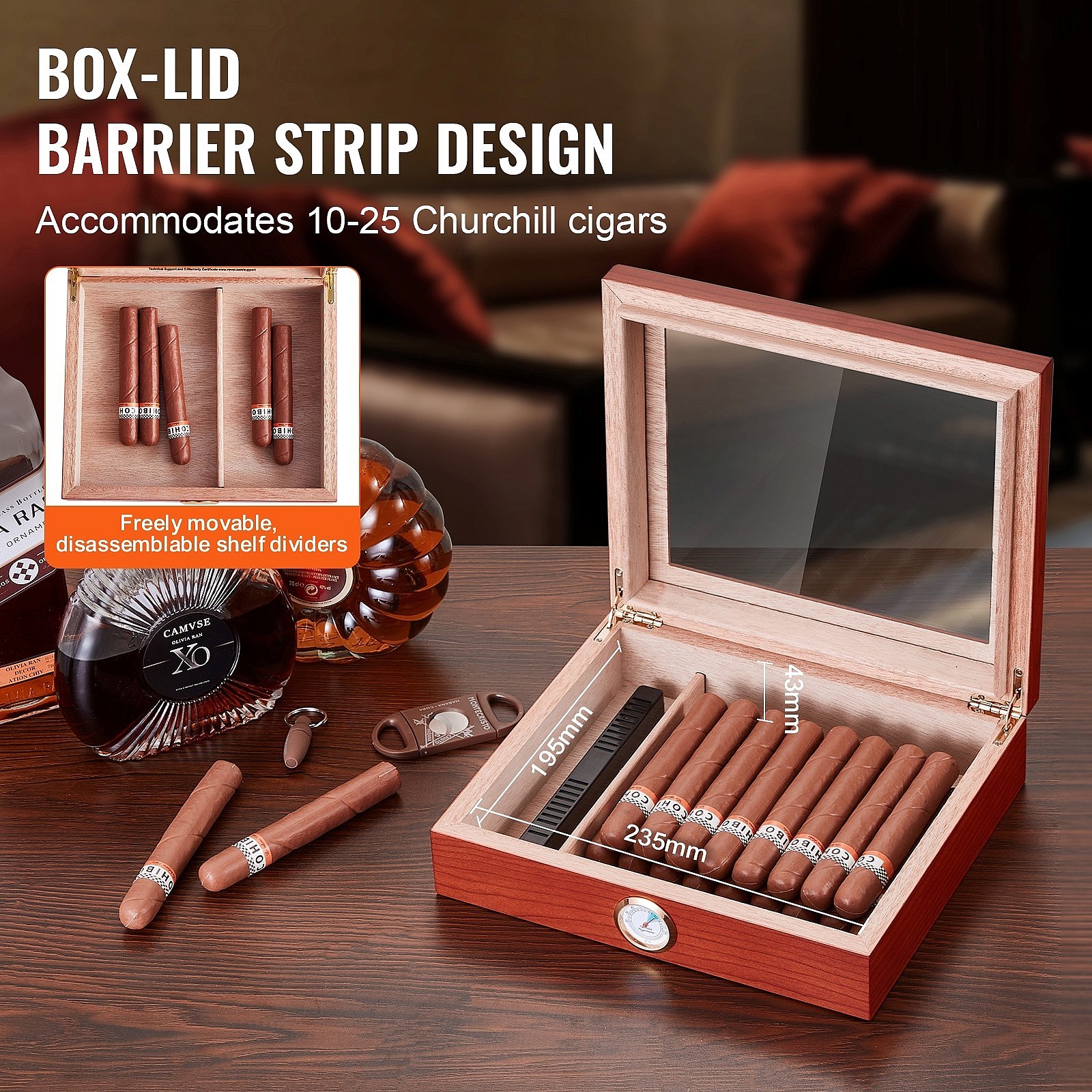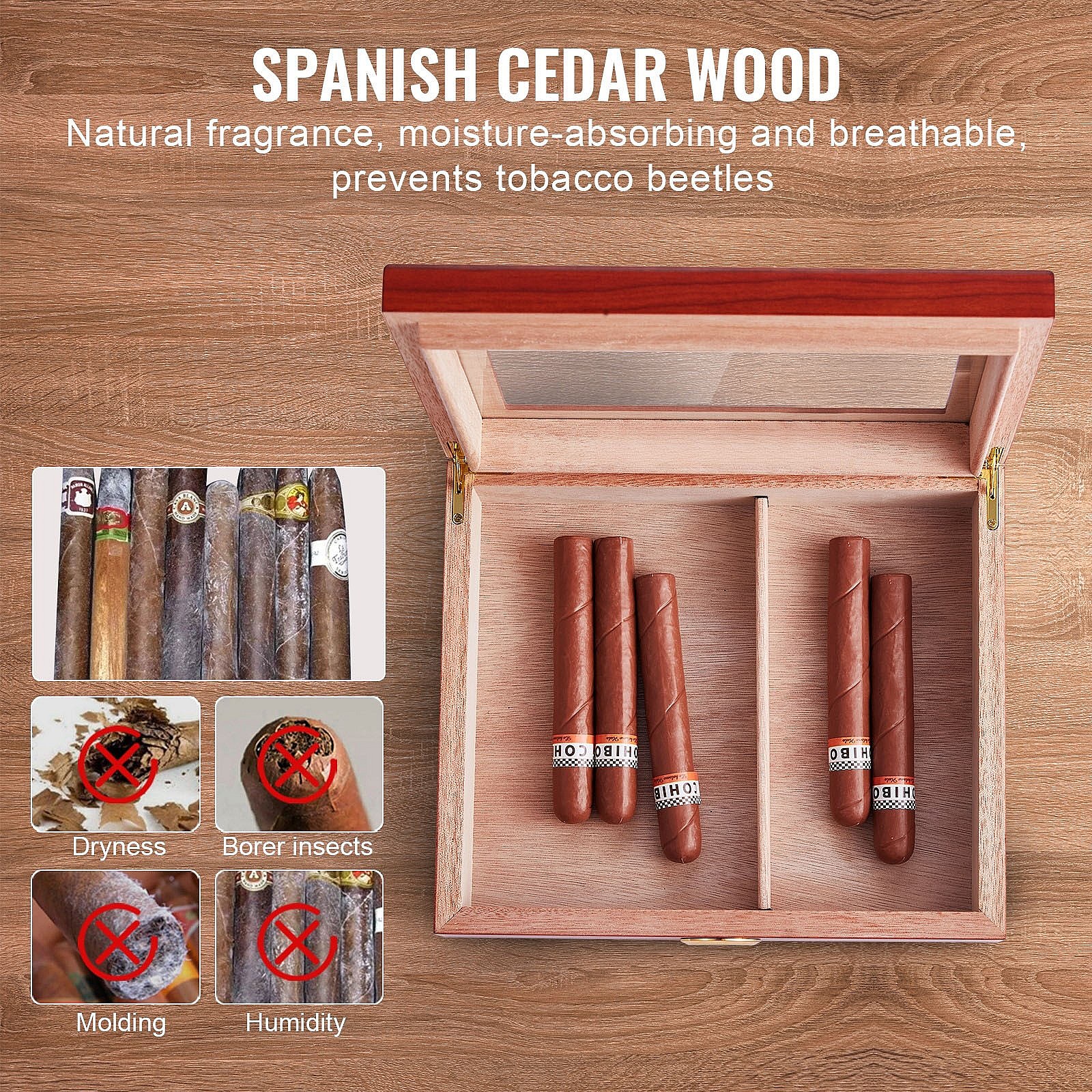 Boîte à Cigares SucceBuy en Cèdre avec Plateau en Verre pour 25 Cigares avec Hygromètre et Humidificateur