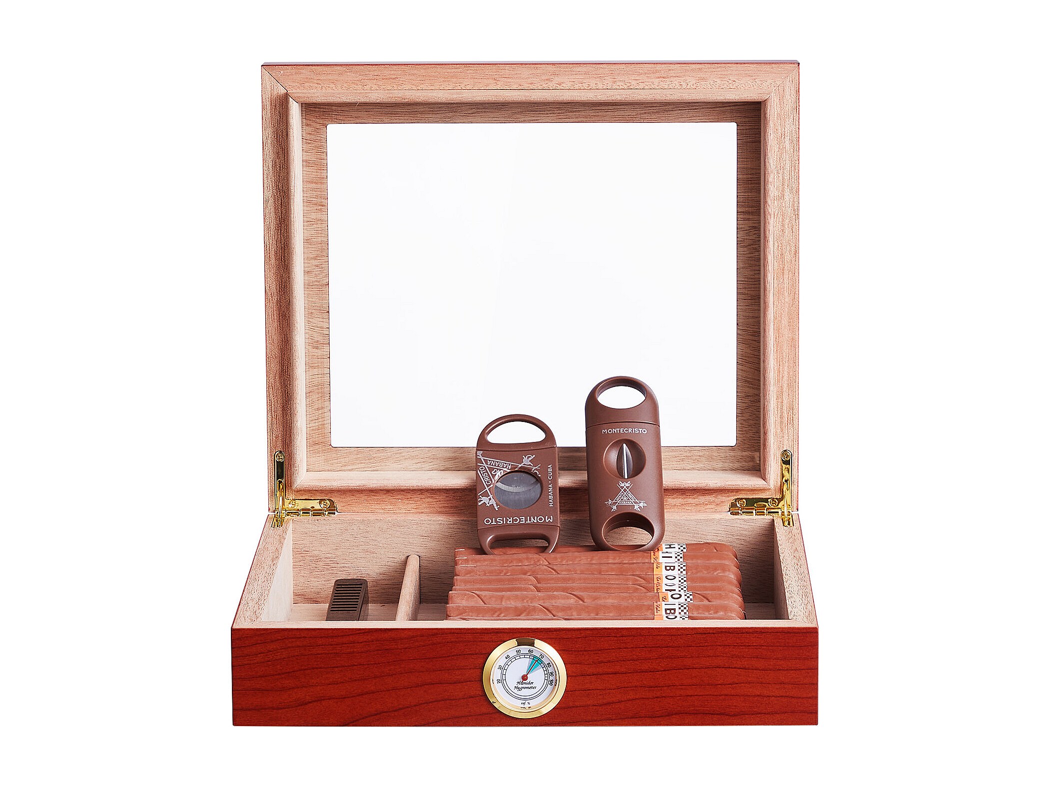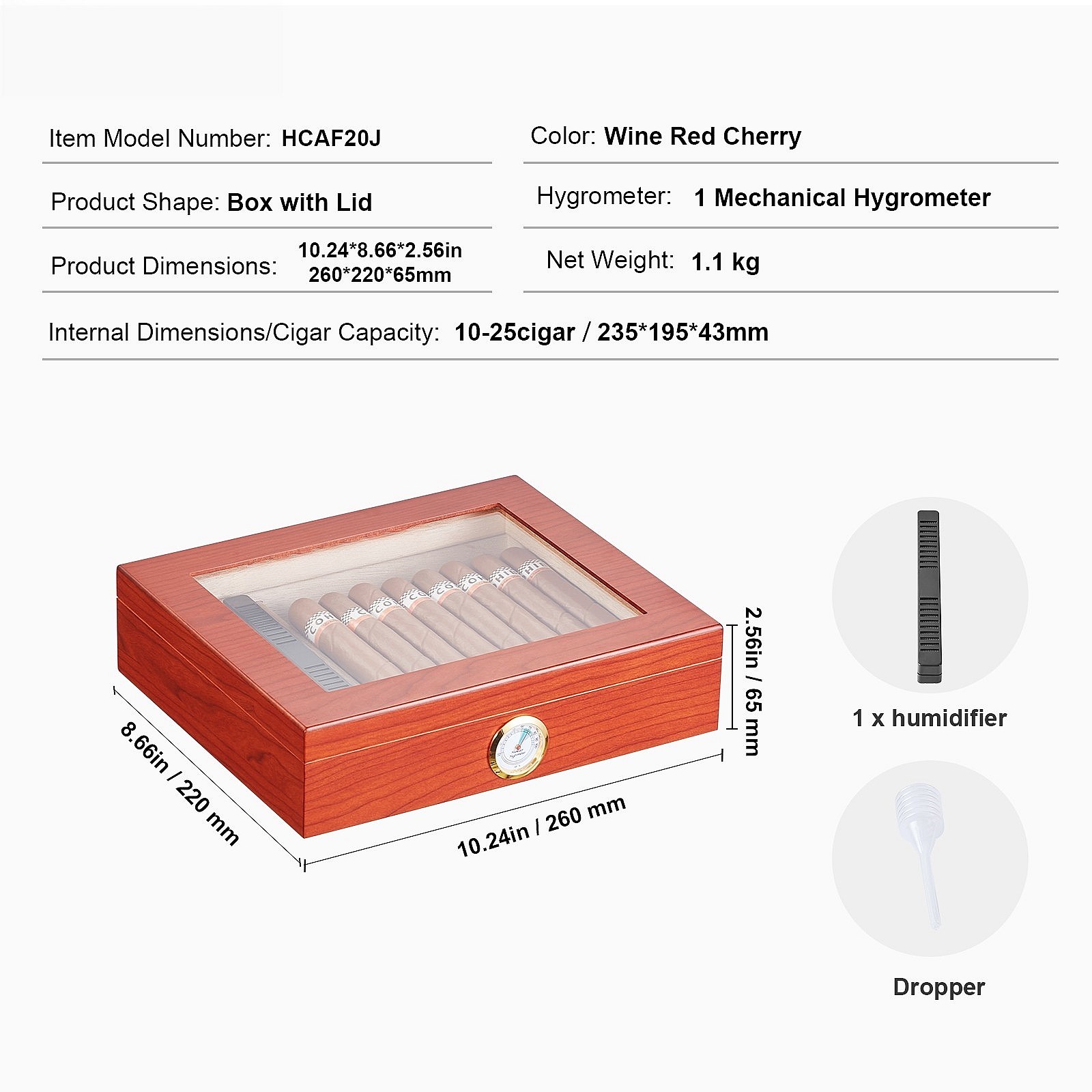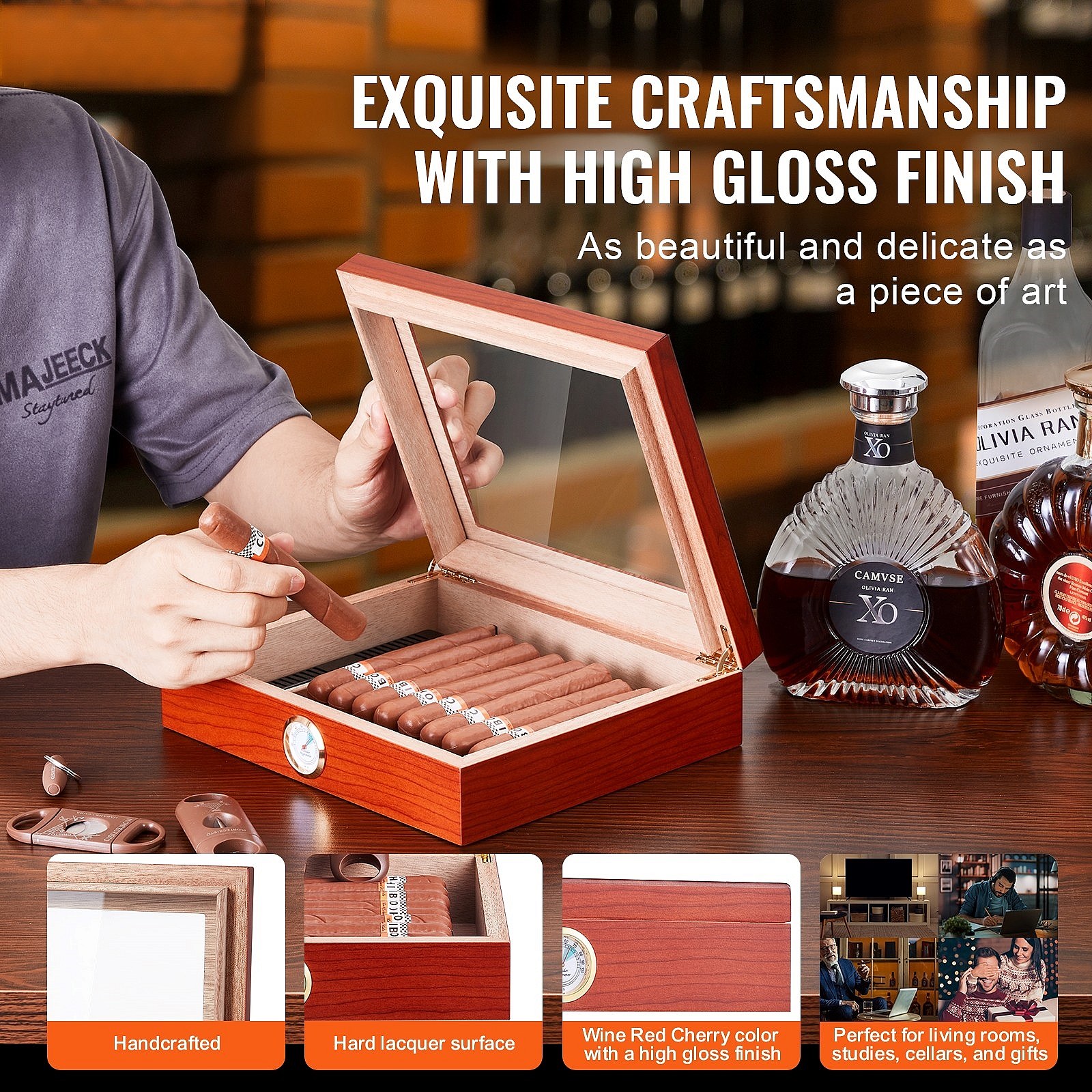 Boîte à Cigares SucceBuy en Cèdre avec Plateau en Verre pour 25 Cigares avec Hygromètre et Humidificateur