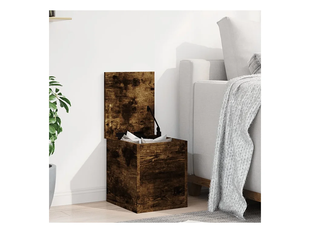 Boîte de rangement chêne fumé 30x35x35 cm bois d'ingénierie
