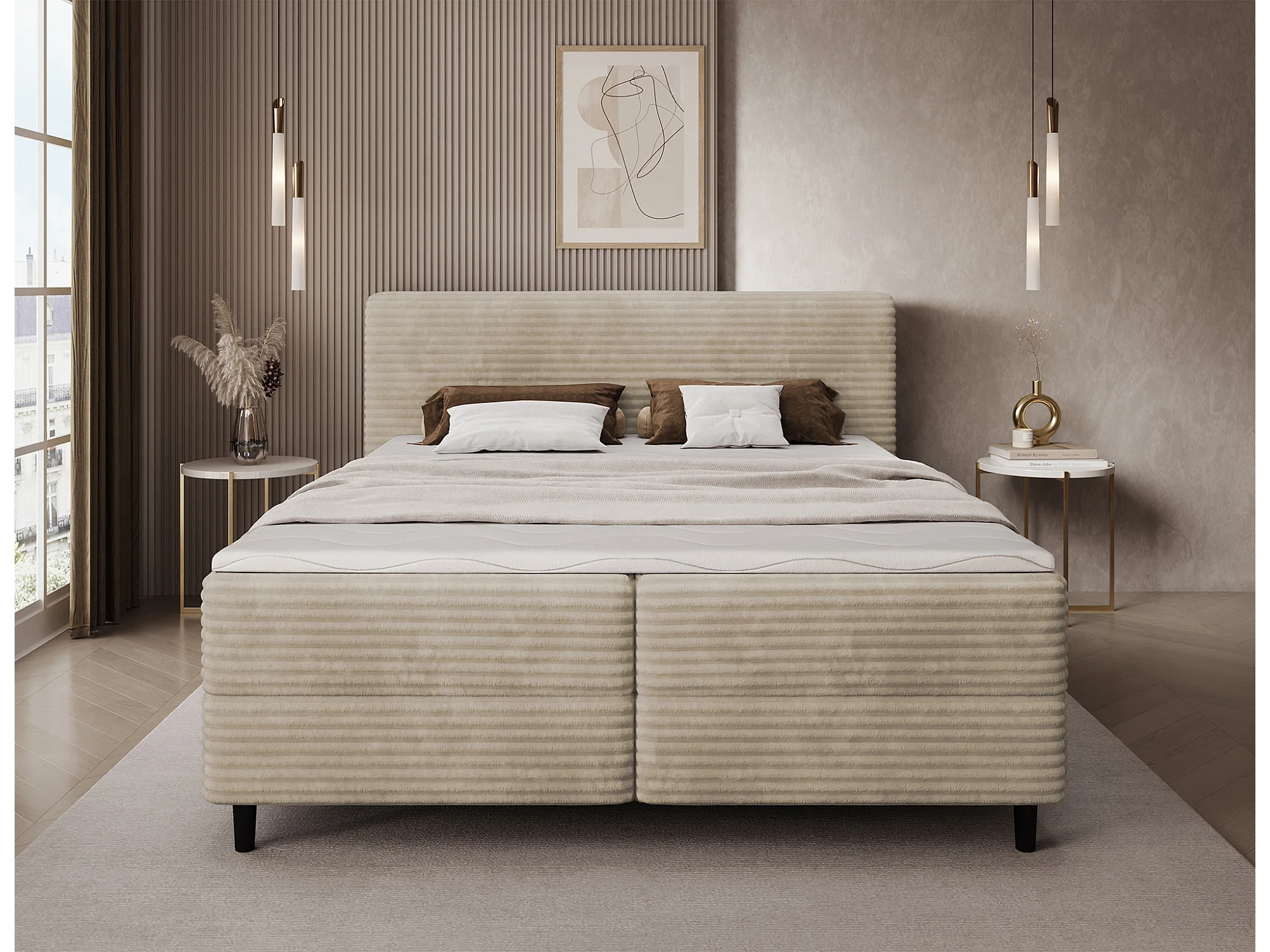 Box spring lit Magnolia/sommier tapissier/housse en tissu peluche/Beige