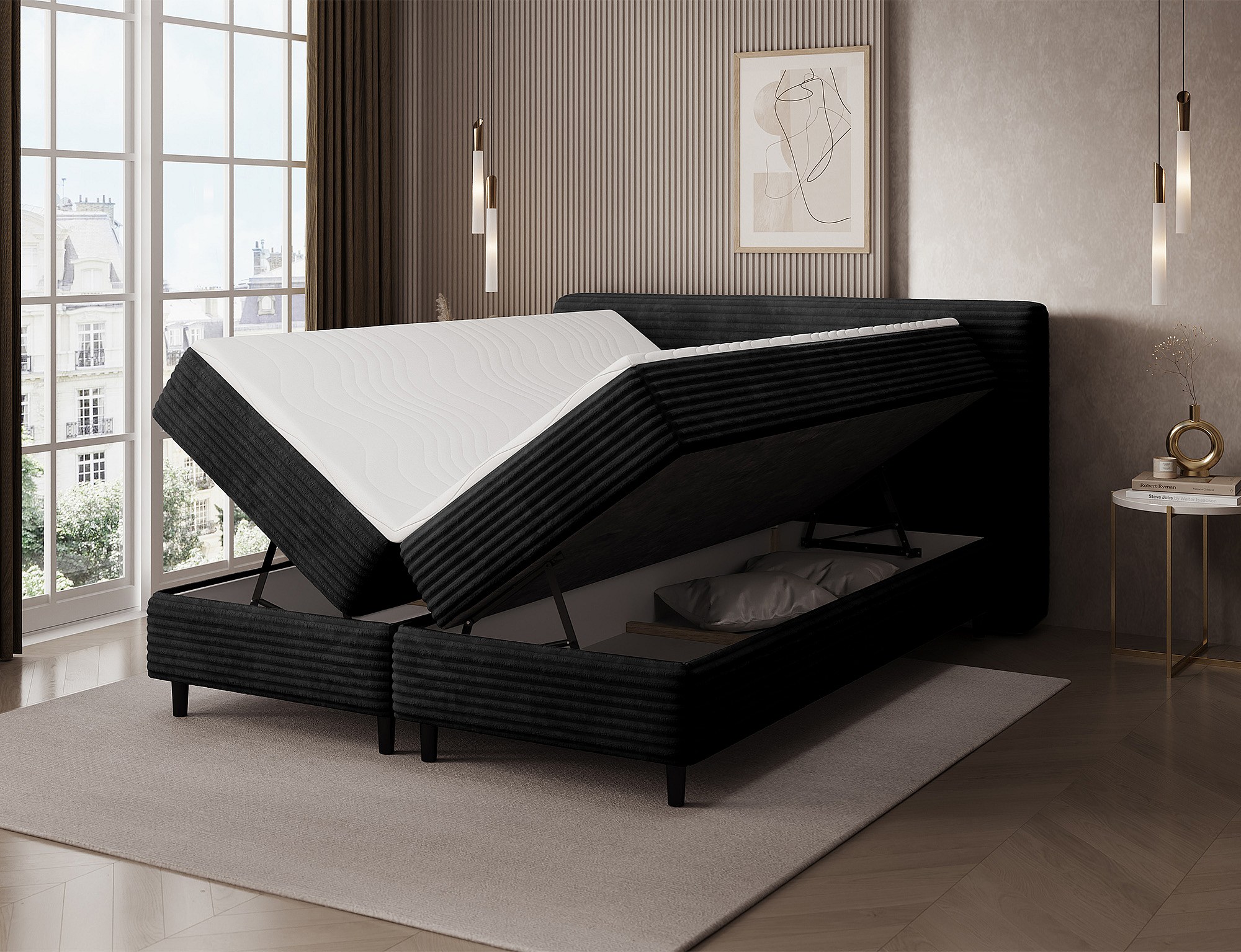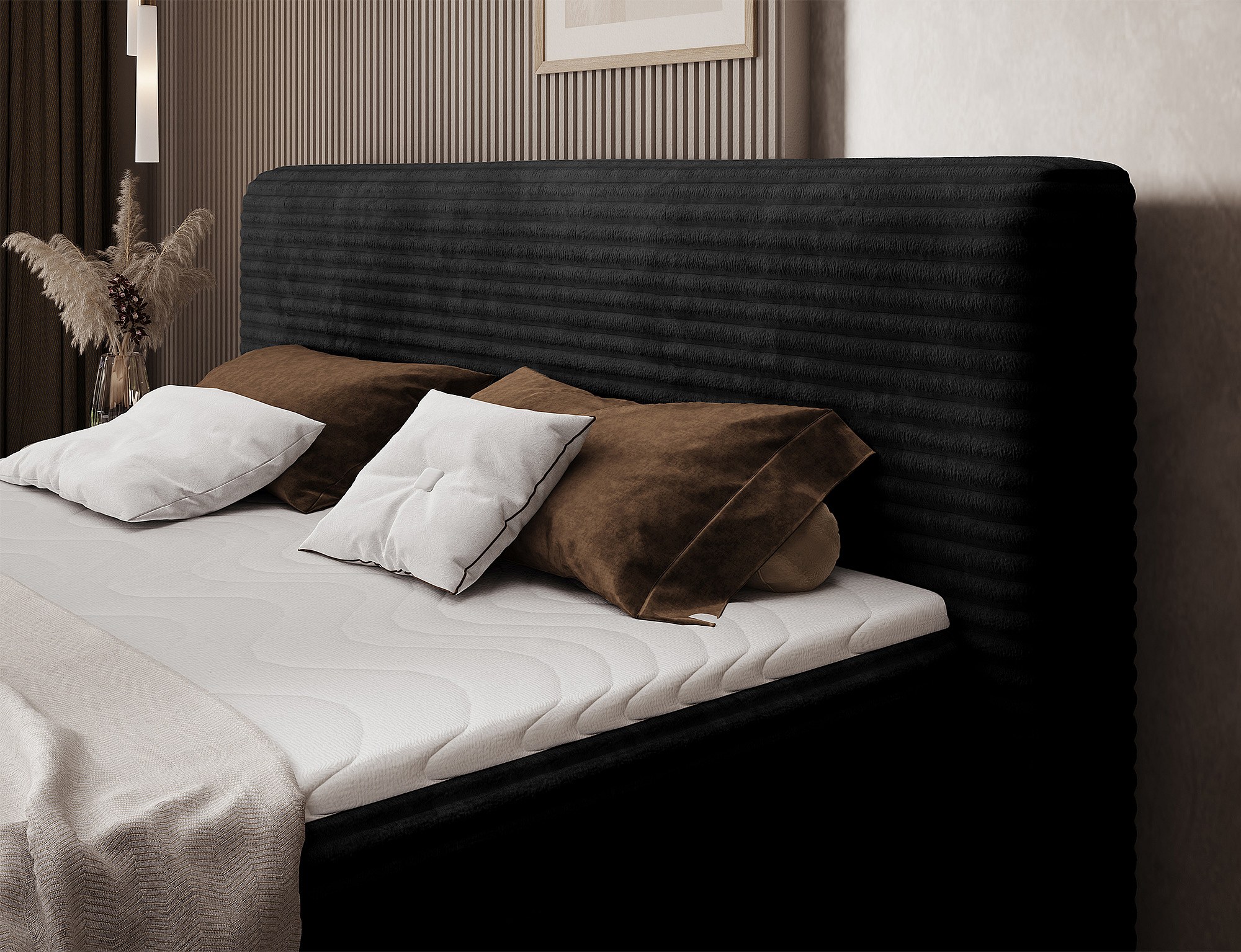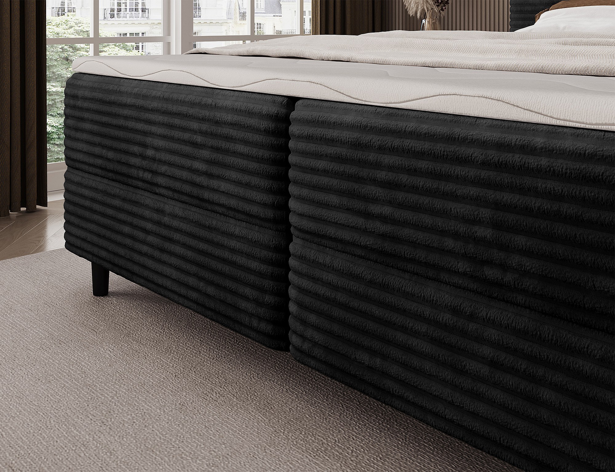 Box spring lit Magnolia/sommier tapissier/housse en tissu peluche/Noir