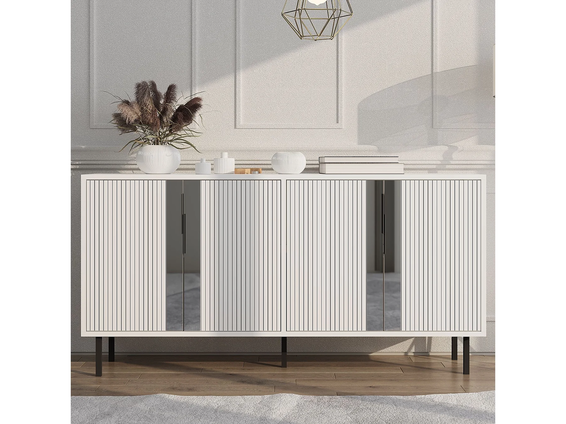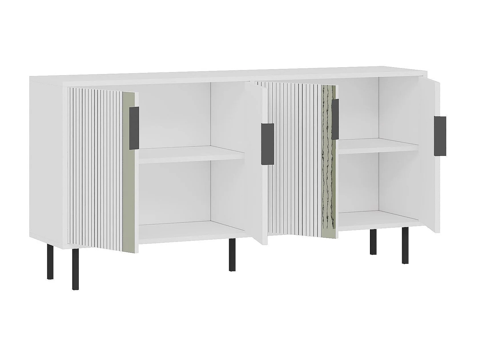 Buffet bas design 4 portes battantes Selly L150cm Blanc et Or