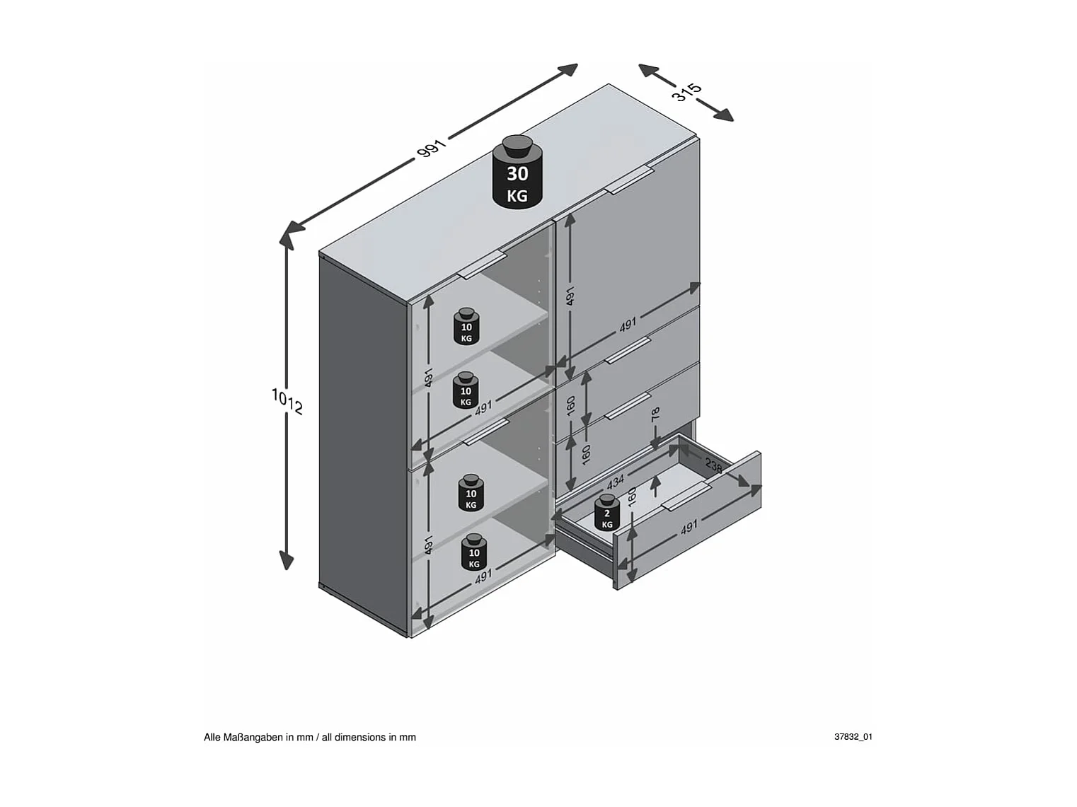 Buffet 3 Portes 3 Tiroirs Noir L99 cm - Dark