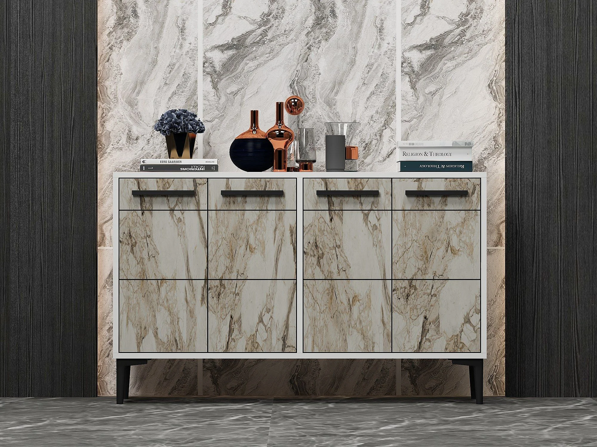 Buffet Alnitak 120cm Effet marbre Blanc et Blanc